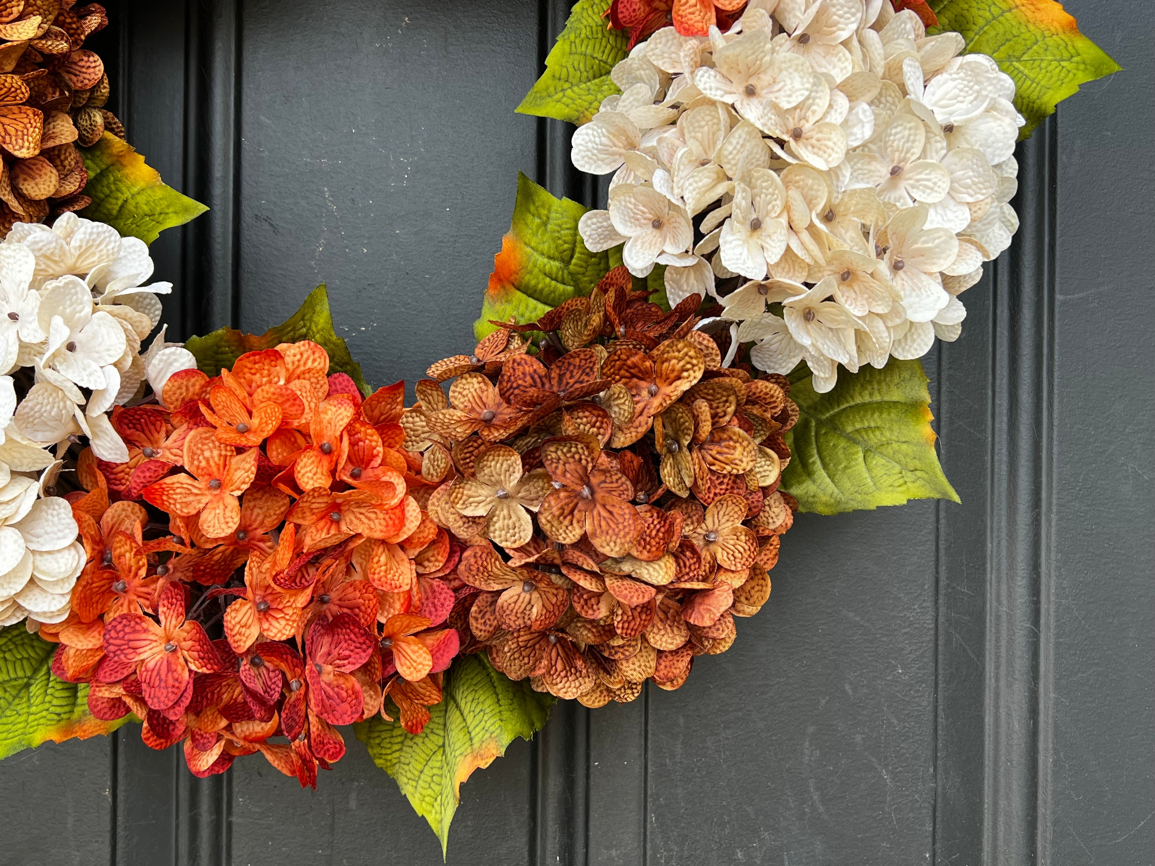 Celebrate the warmth of fall with our Rustic and Simple Harvest Hydrangea Wreath. Handcrafted with rich hues of brown, orange, and cream hydrangeas, this wreath is perfect for fall through Thanksgiving. Whether you display it on your covered front door or inside your home, this wreath offers a welcoming and elegant touch, bringing the harvest season’s beauty right to your doorstep.