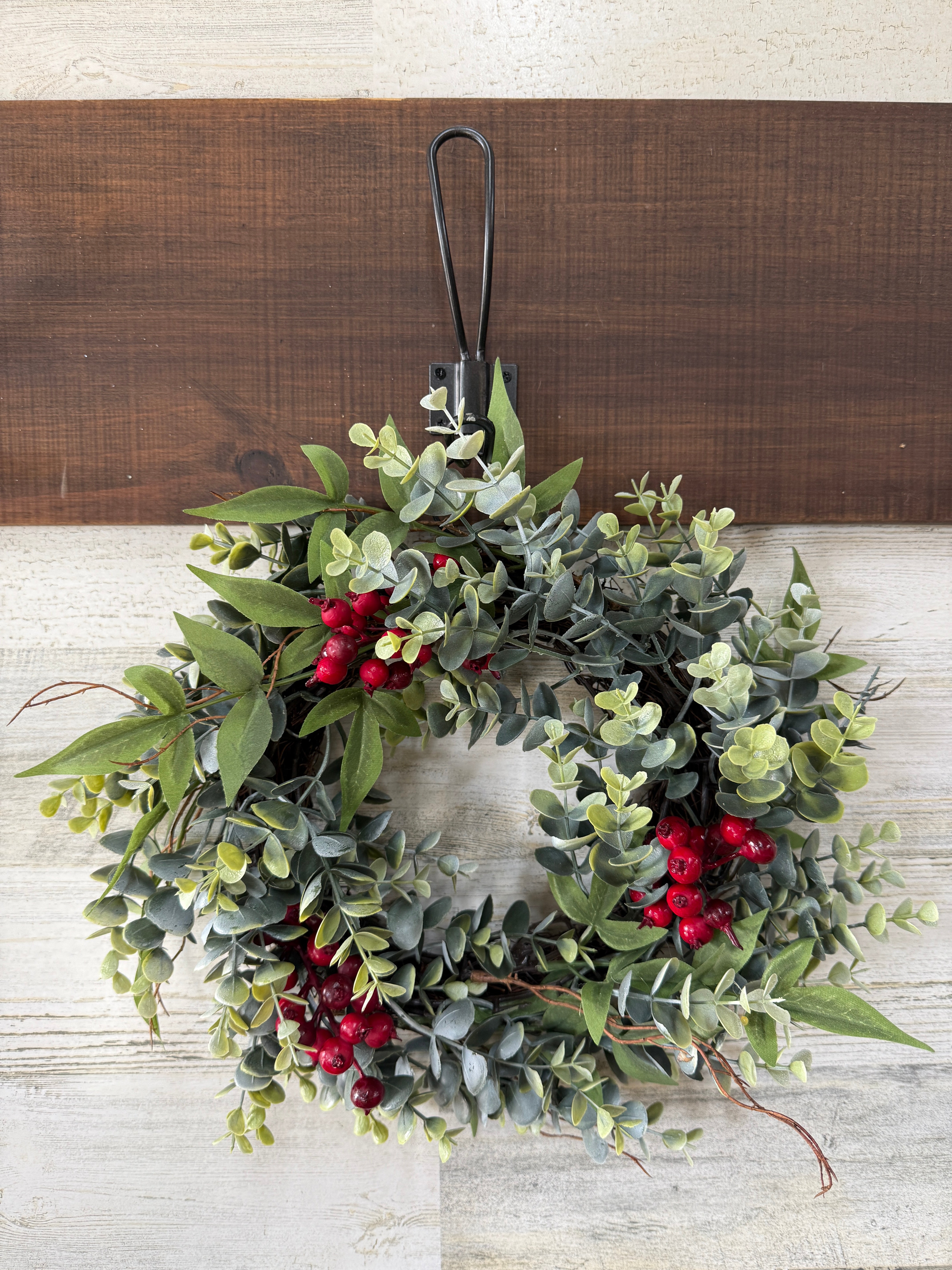 Eucalyptus and Red Berry Mini Wreath for Christmas