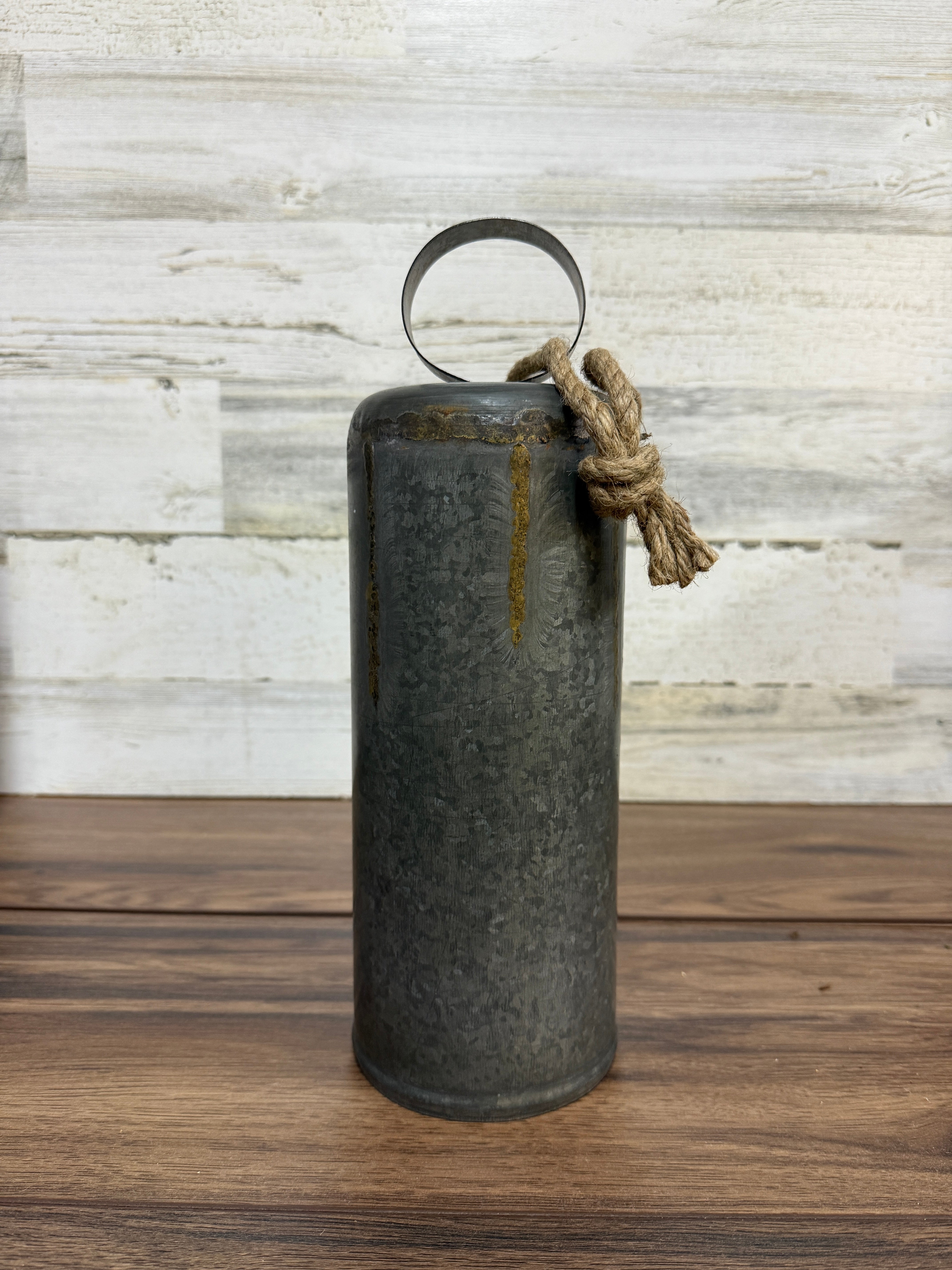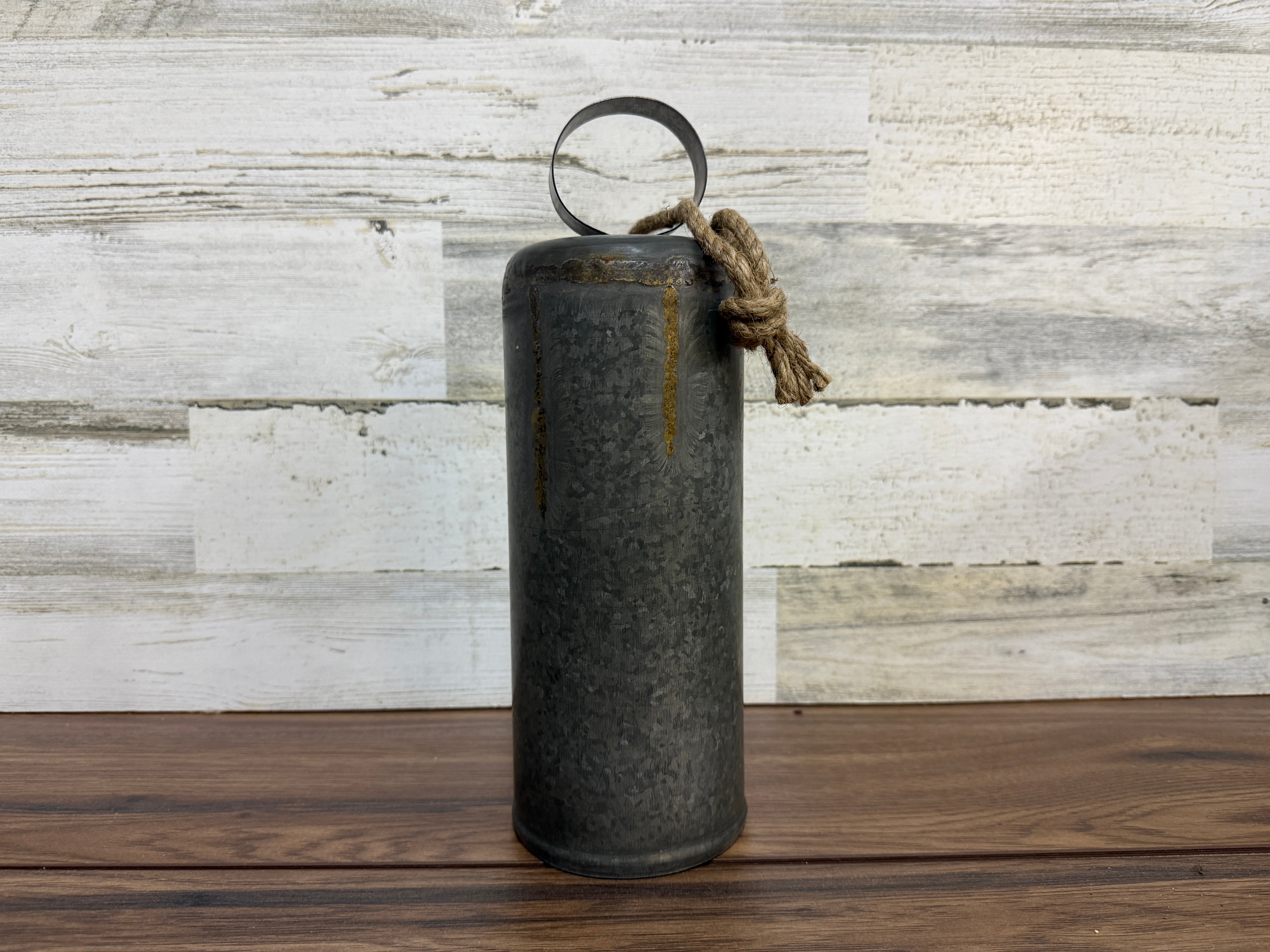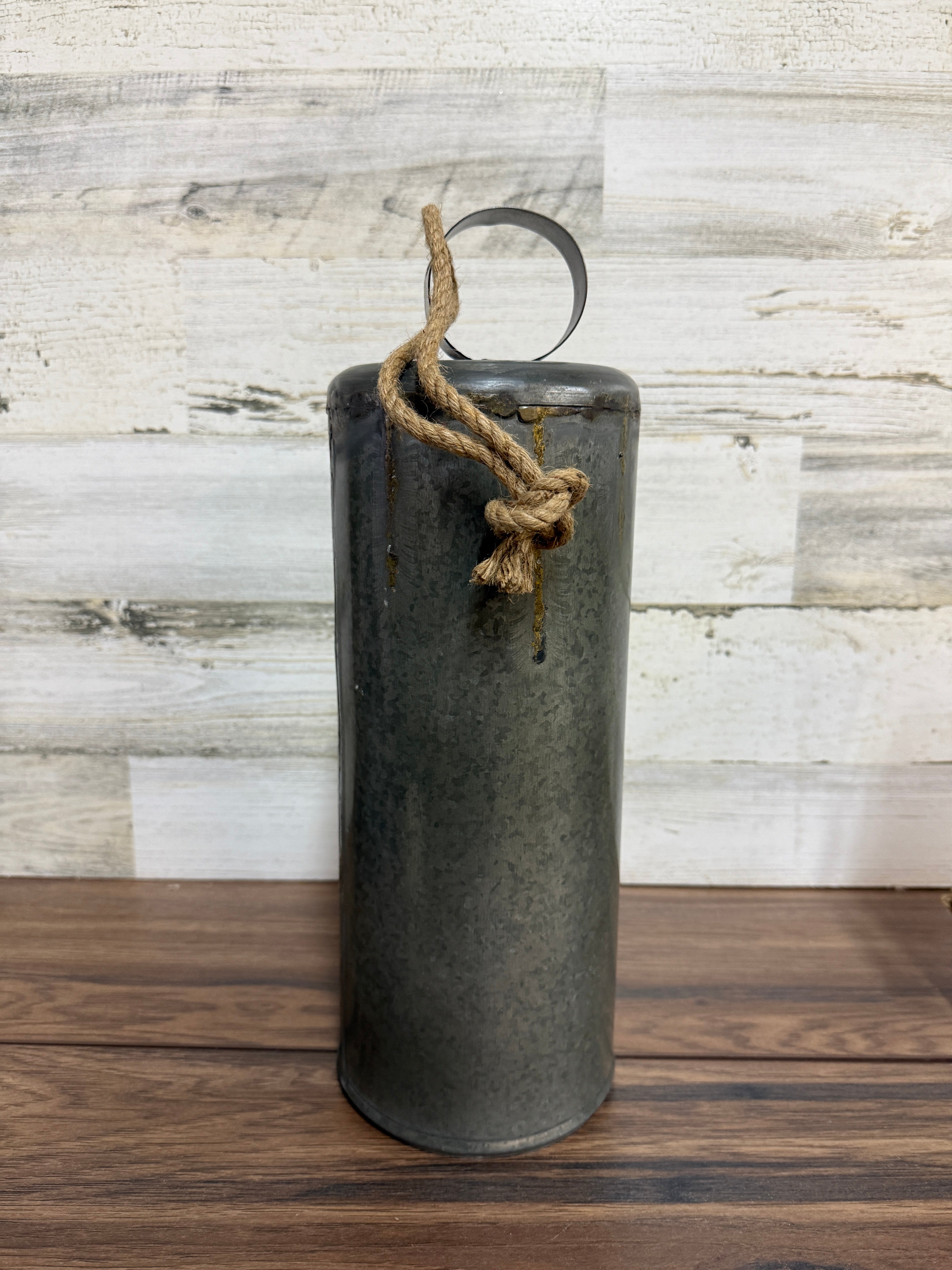 Bring a warm, rustic touch to your holiday decorating with these dark galvanized metal hanging bells. Their tall, narrow shape and beautifully weathered finish create an authentic vintage look that blends effortlessly with farmhouse, woodland, and classic Christmas styling. Each bell hangs from a thick jute rope, adding natural texture and timeless character to your mantel, tabletop arrangements, or wreath displays.