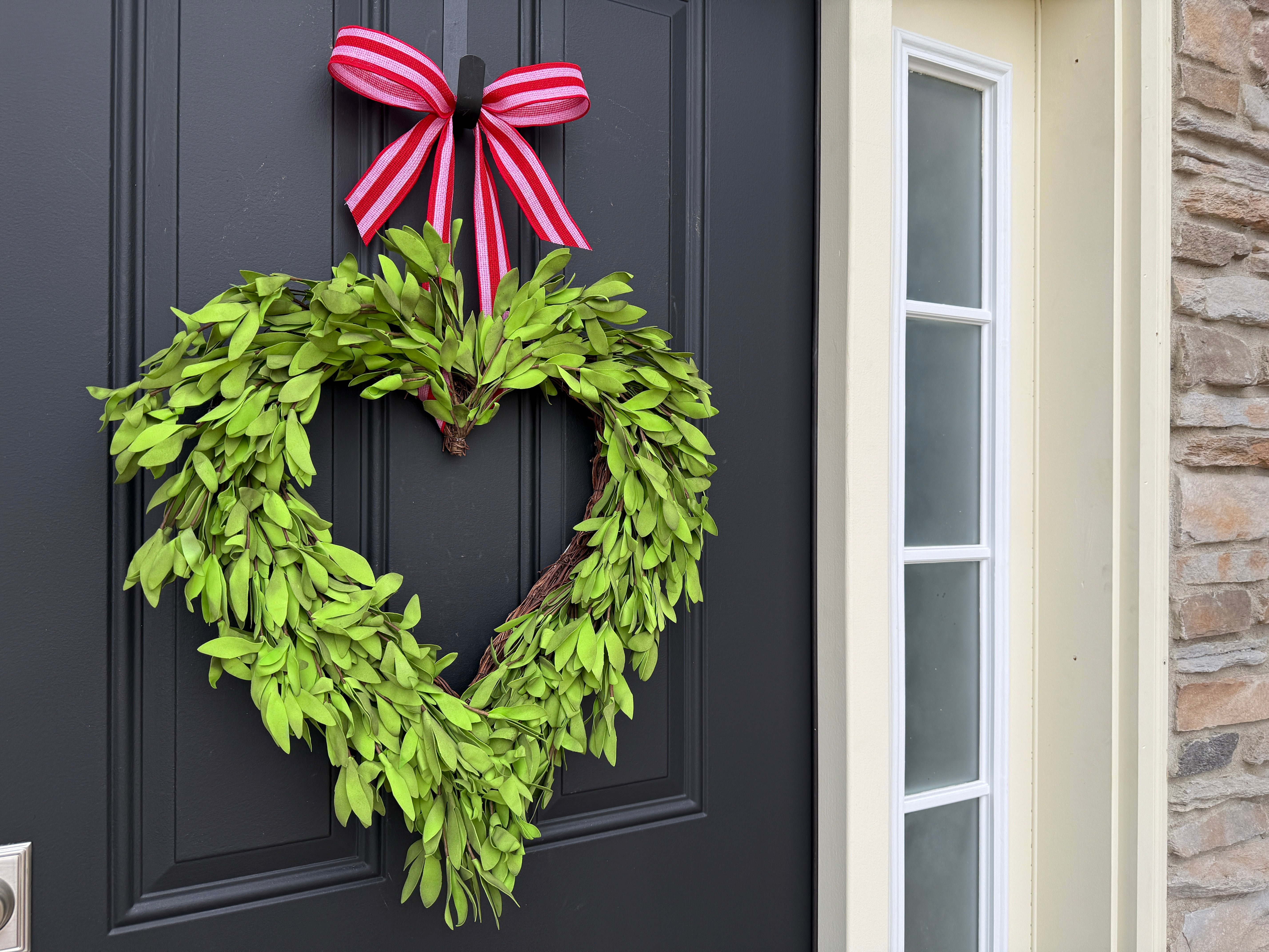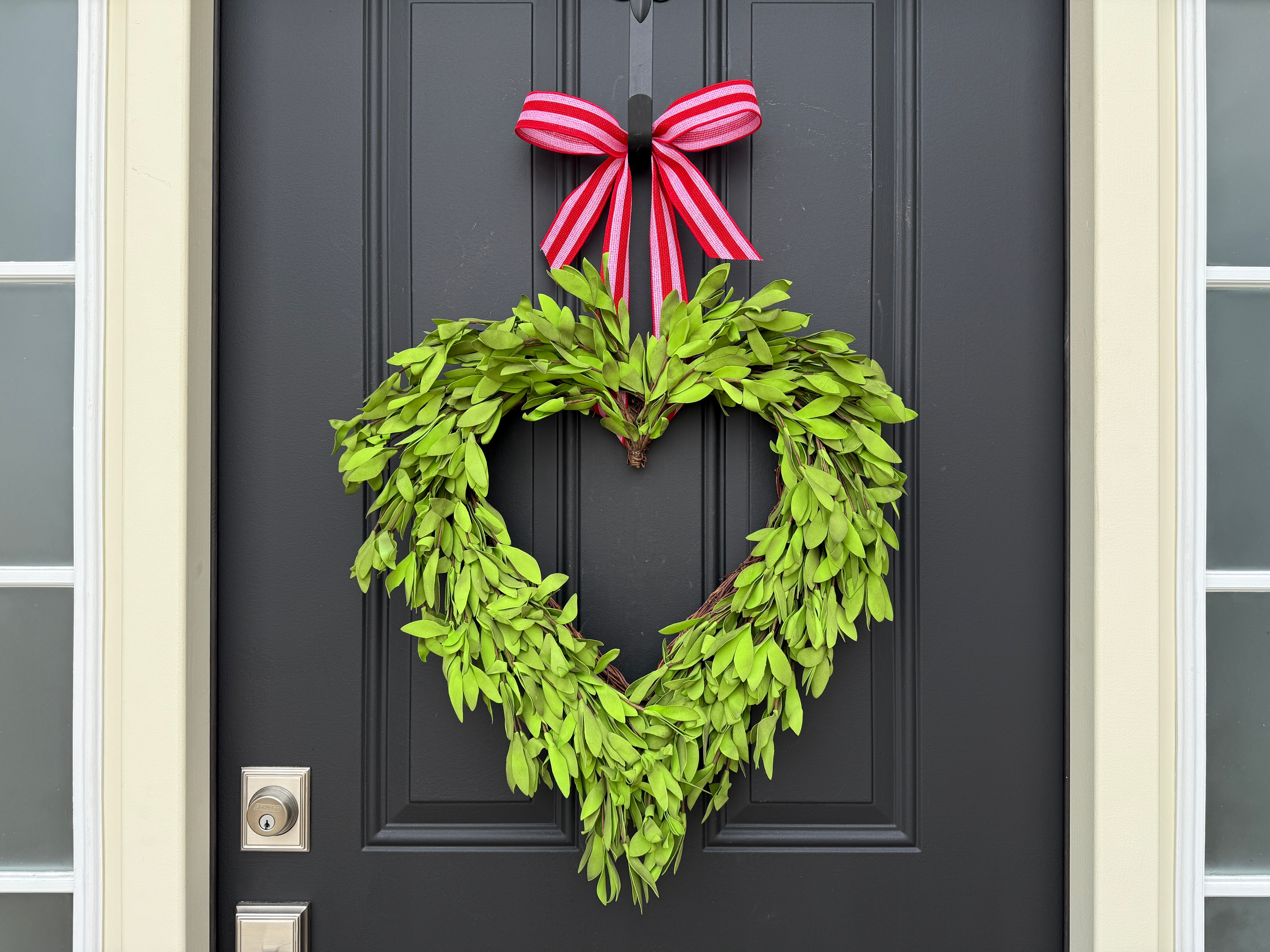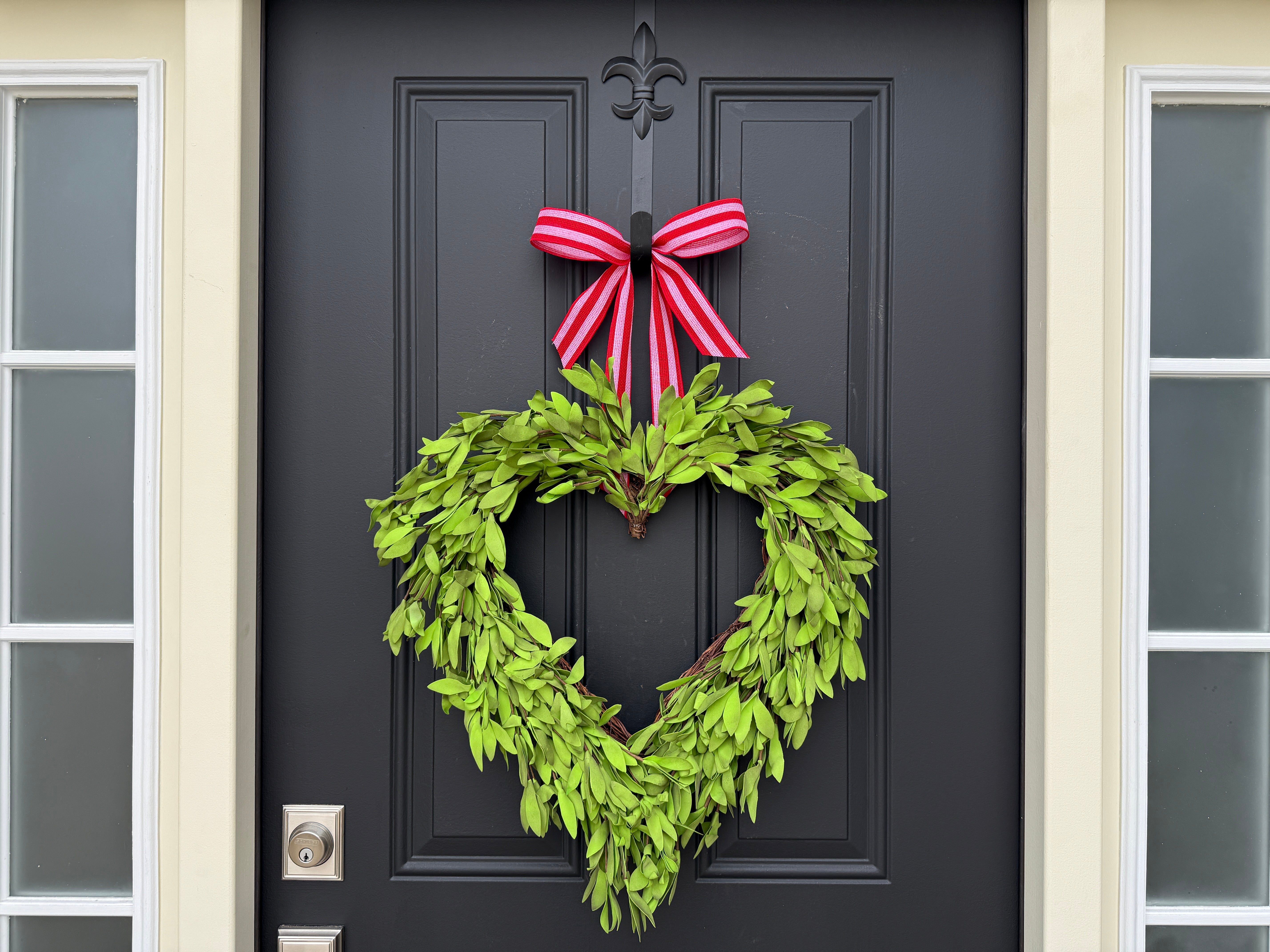 Embrace simplicity and elegance with our this lush green boxwood heart wreath. Featuring a vibrant array of faux boxwood shaped into a heart and topped with a cream-colored bow, this wreath brings a refreshing and modern touch to your door. Perfect for all seasons, this wreath adds a subtle yet striking element to your home’s entryway or interior décor. We also love it for wedding celebrations, from bridal showers to gardens weddings and more!