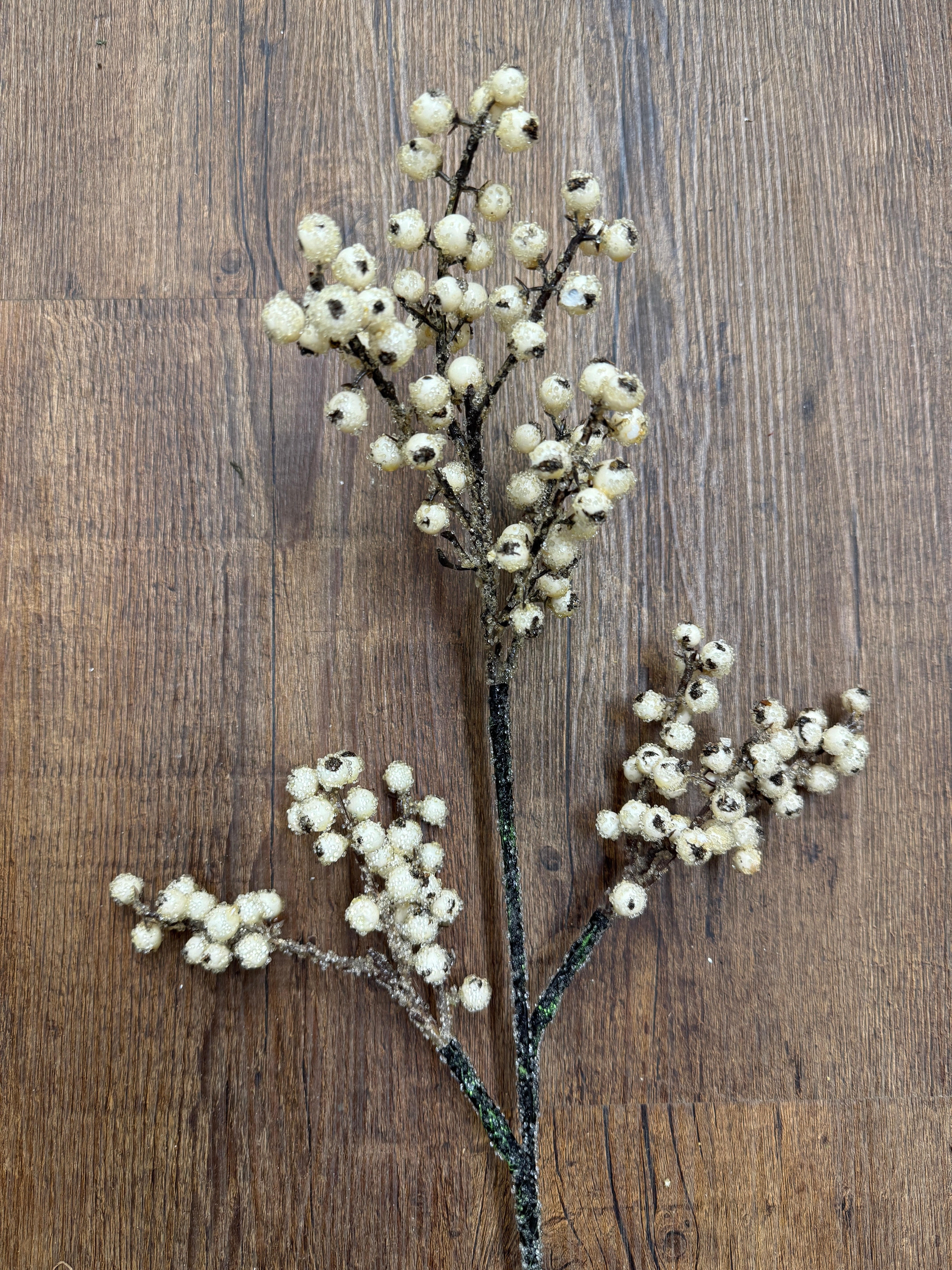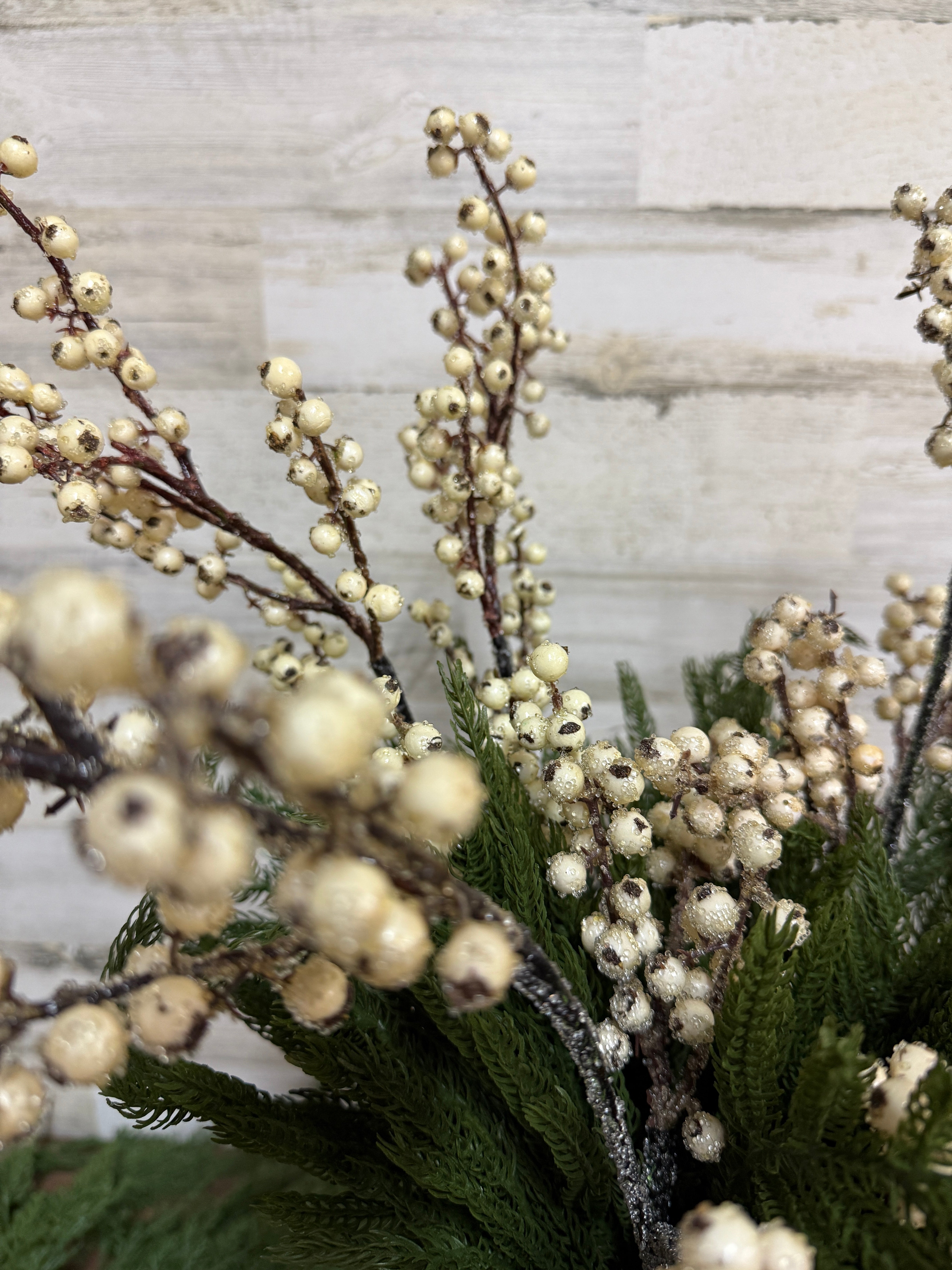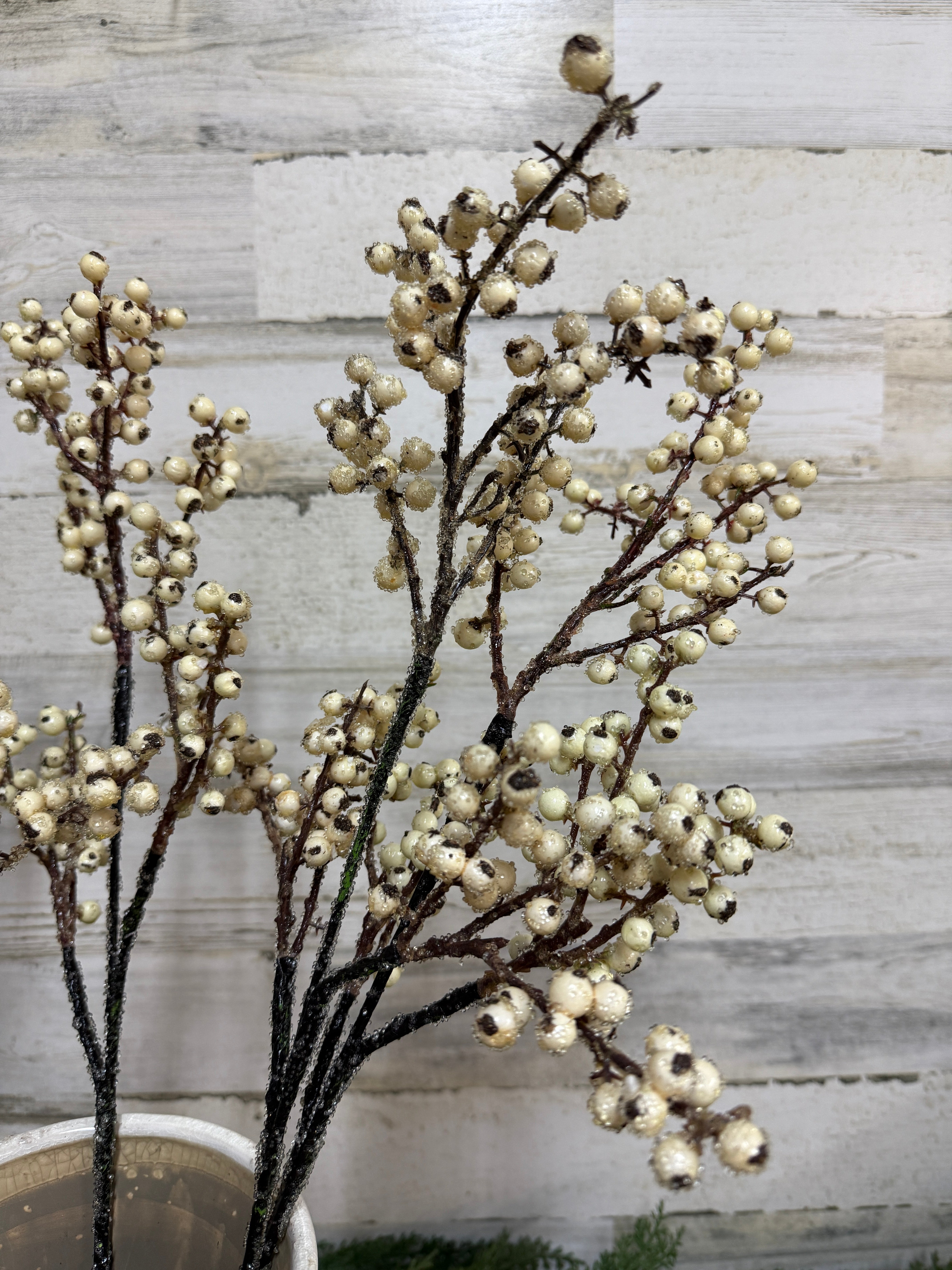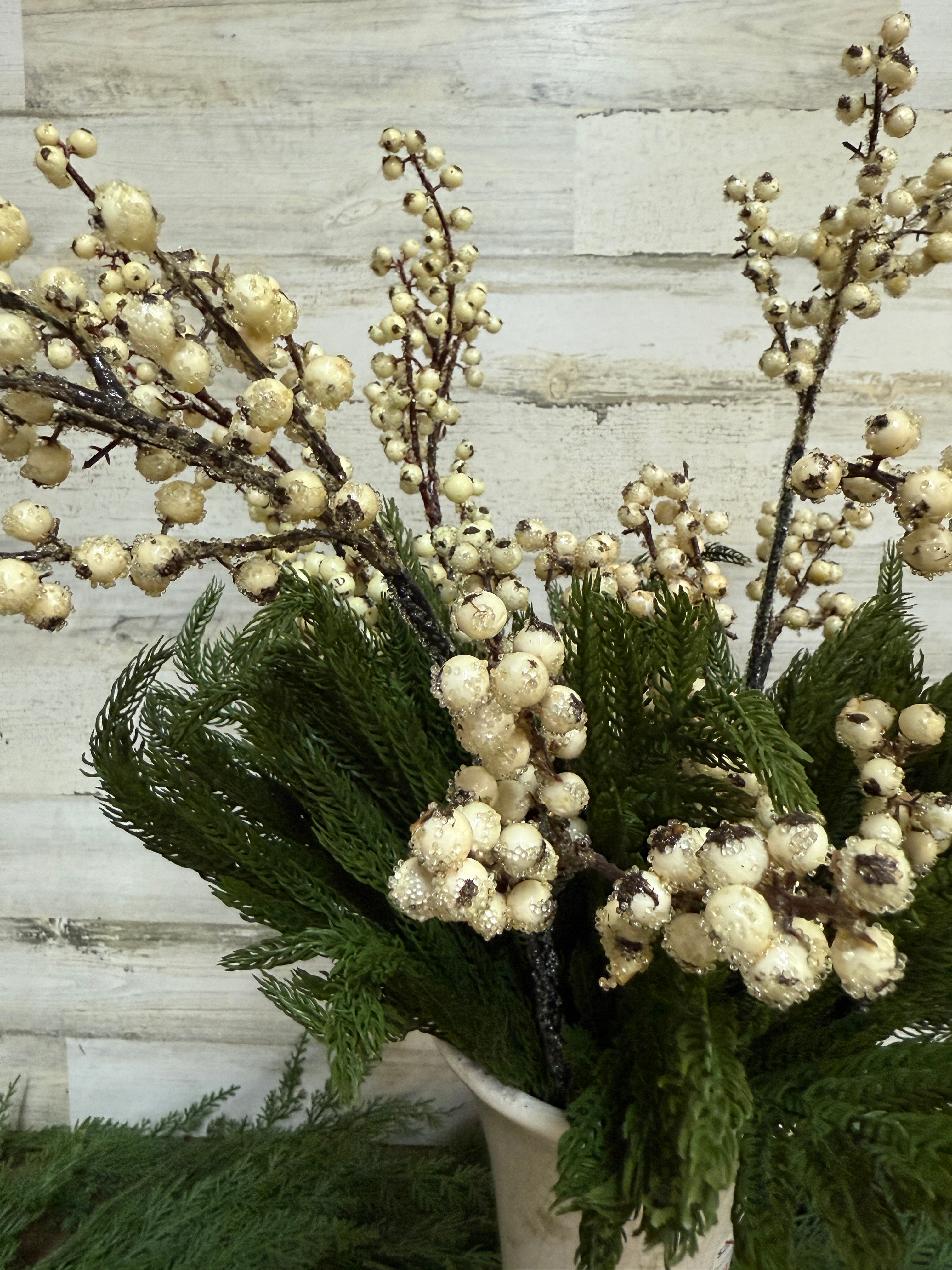25" Iced Cream Berry Cluster Spray for Winter Wreaths & Vases