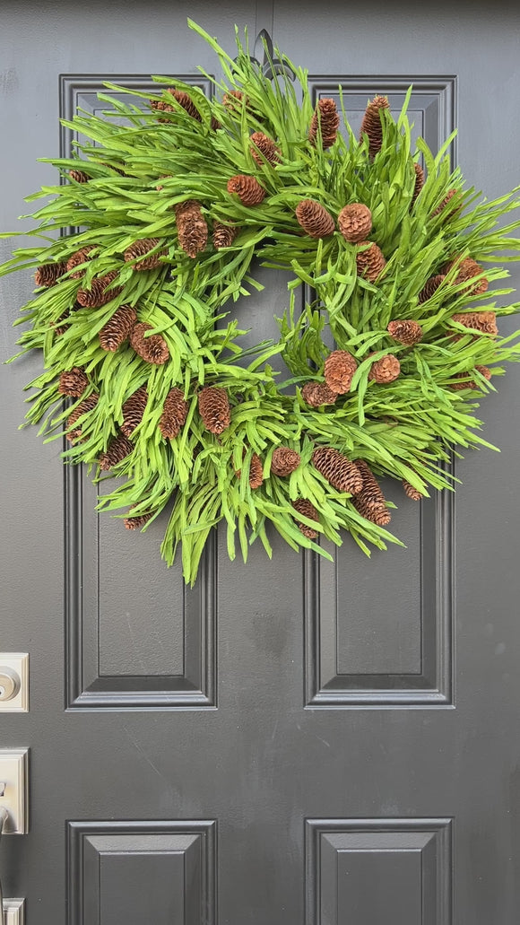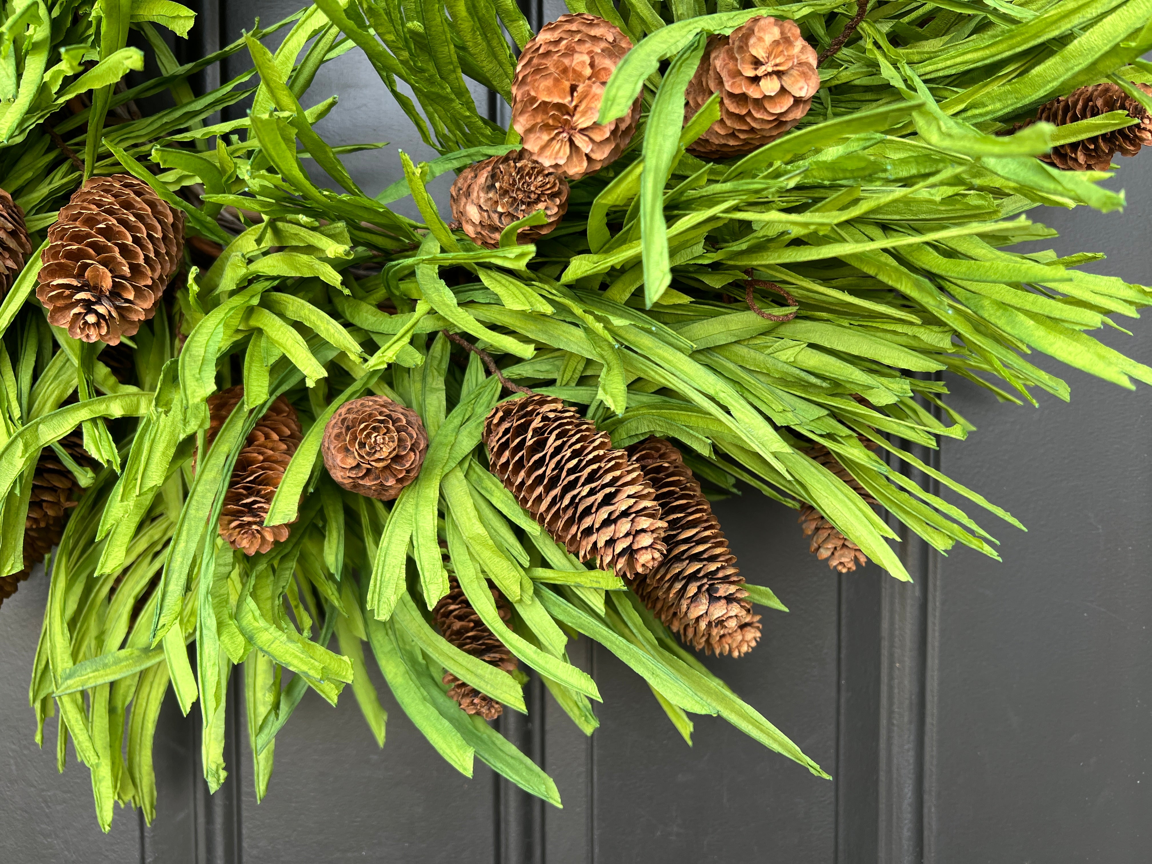 Beach Grass Pine Wreath with Pinecones – Coastal Christmas Décor |