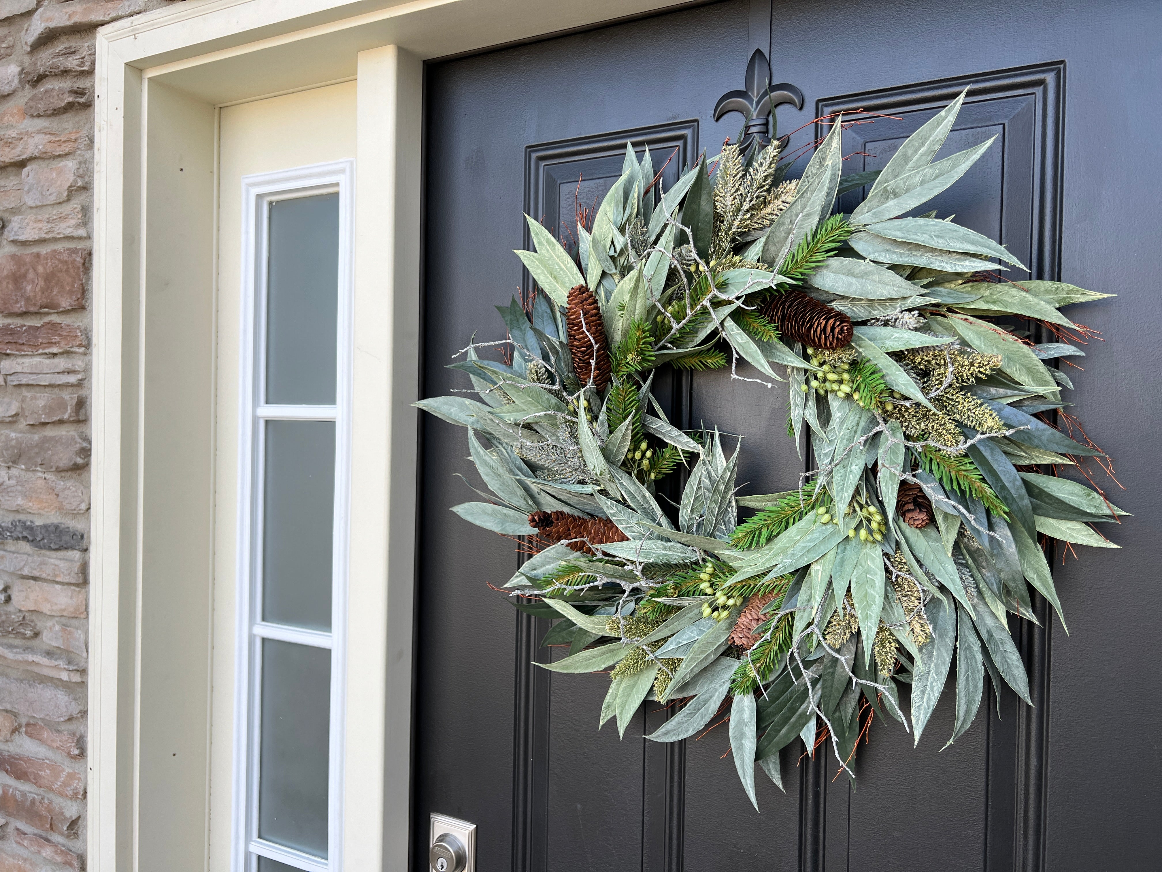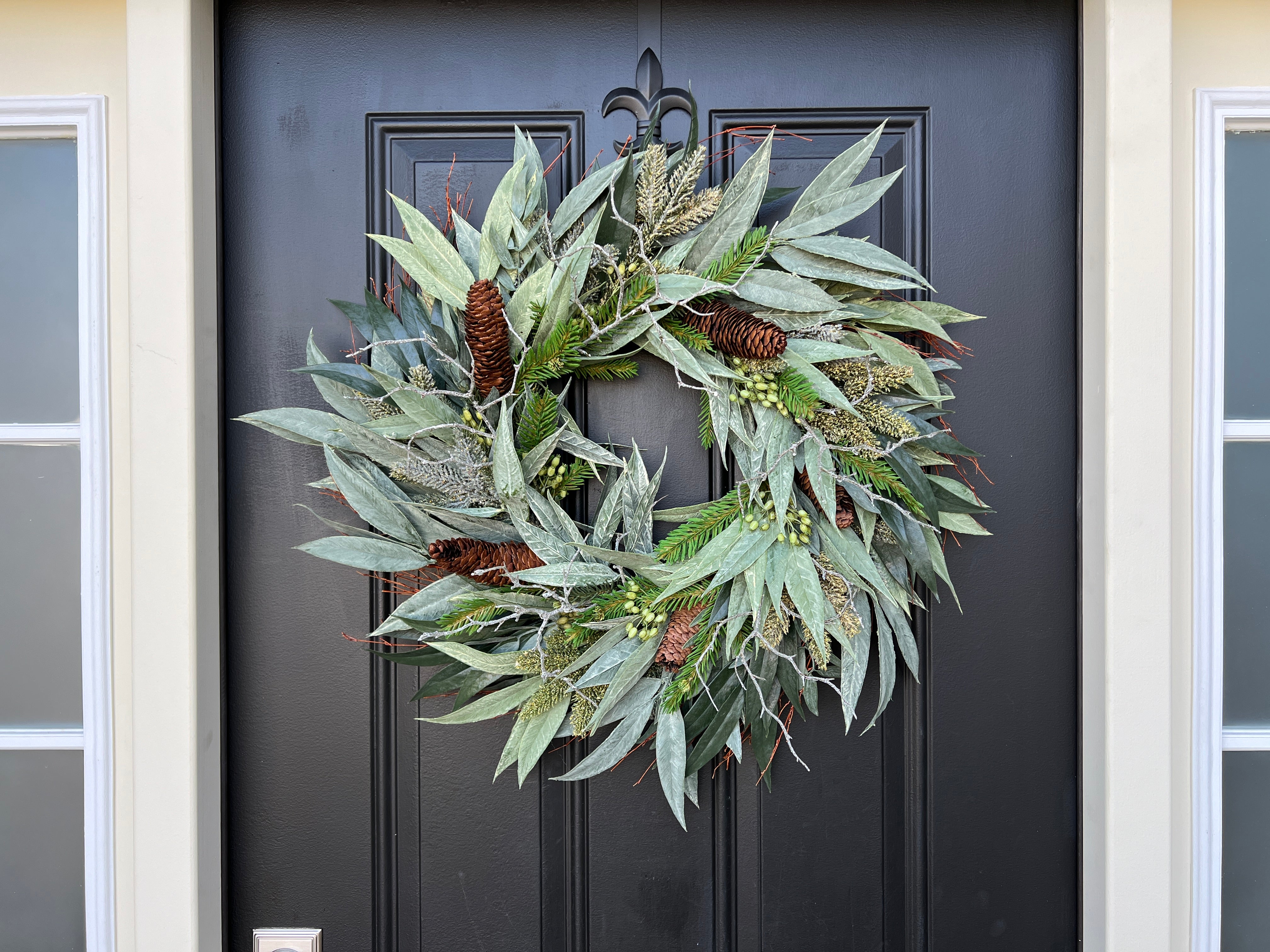 A design that carries you from Christmas through winter’s quiet months — this gorgeous handcrafted wreath blends soft bay leaves with pine sprigs and natural accents. It’s elegant, versatile, and refreshingly understated for year-round appeal.