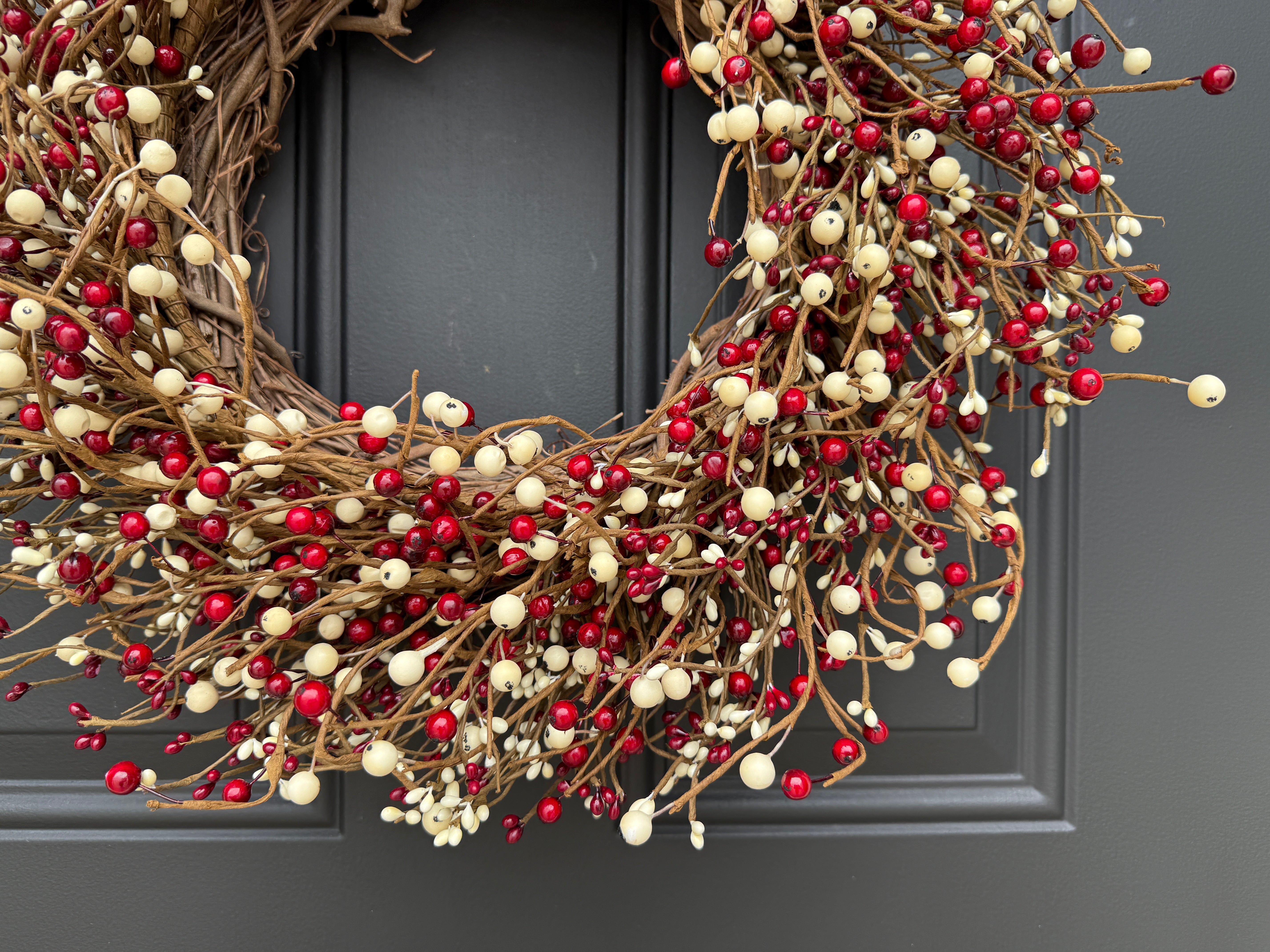 Red and Cream Berry Christmas Wreath | Holiday Door Décor | Limited Offer