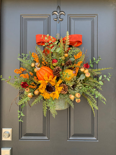 Bountiful Autumn Gatherings Bucket Wreath