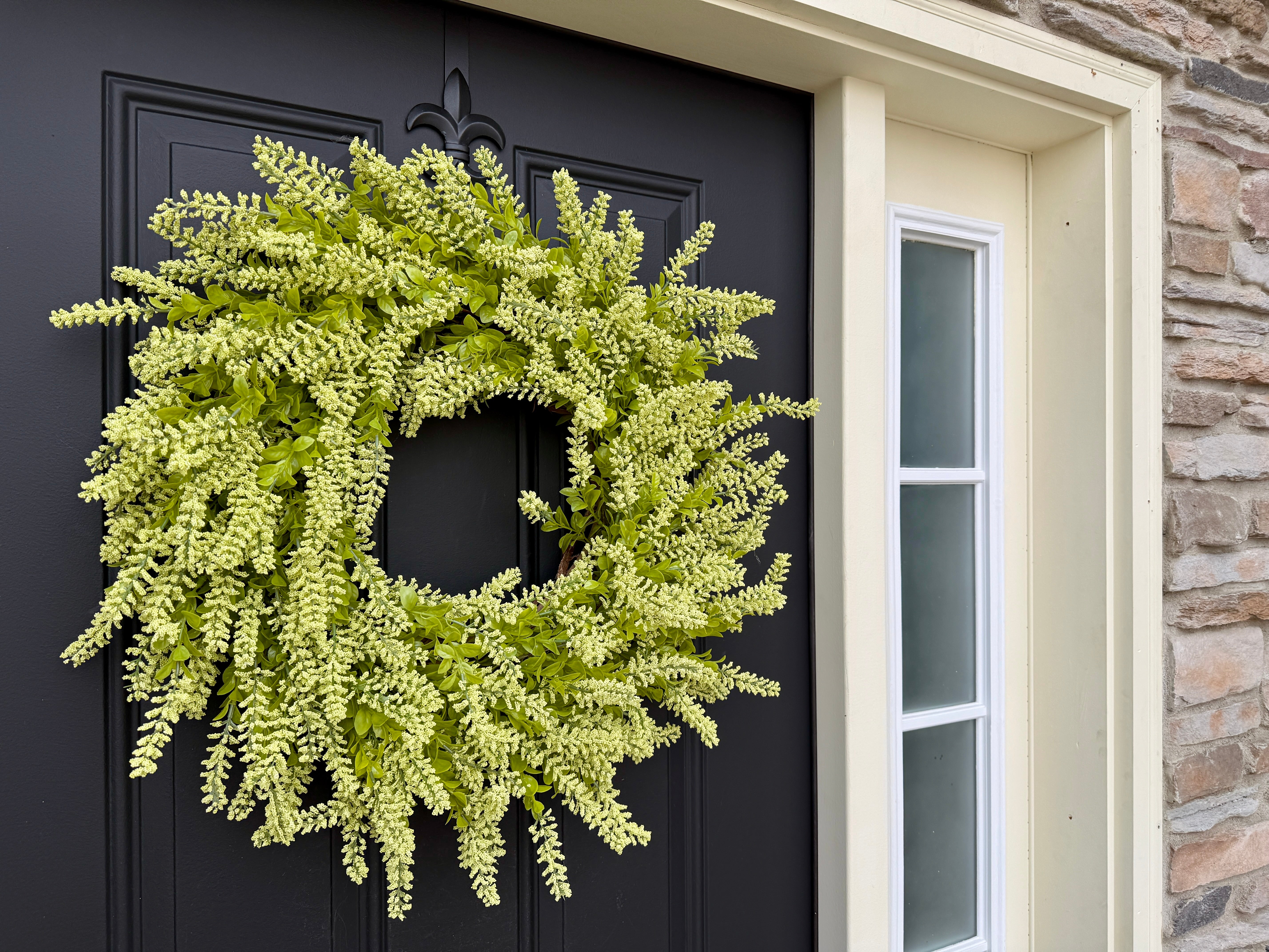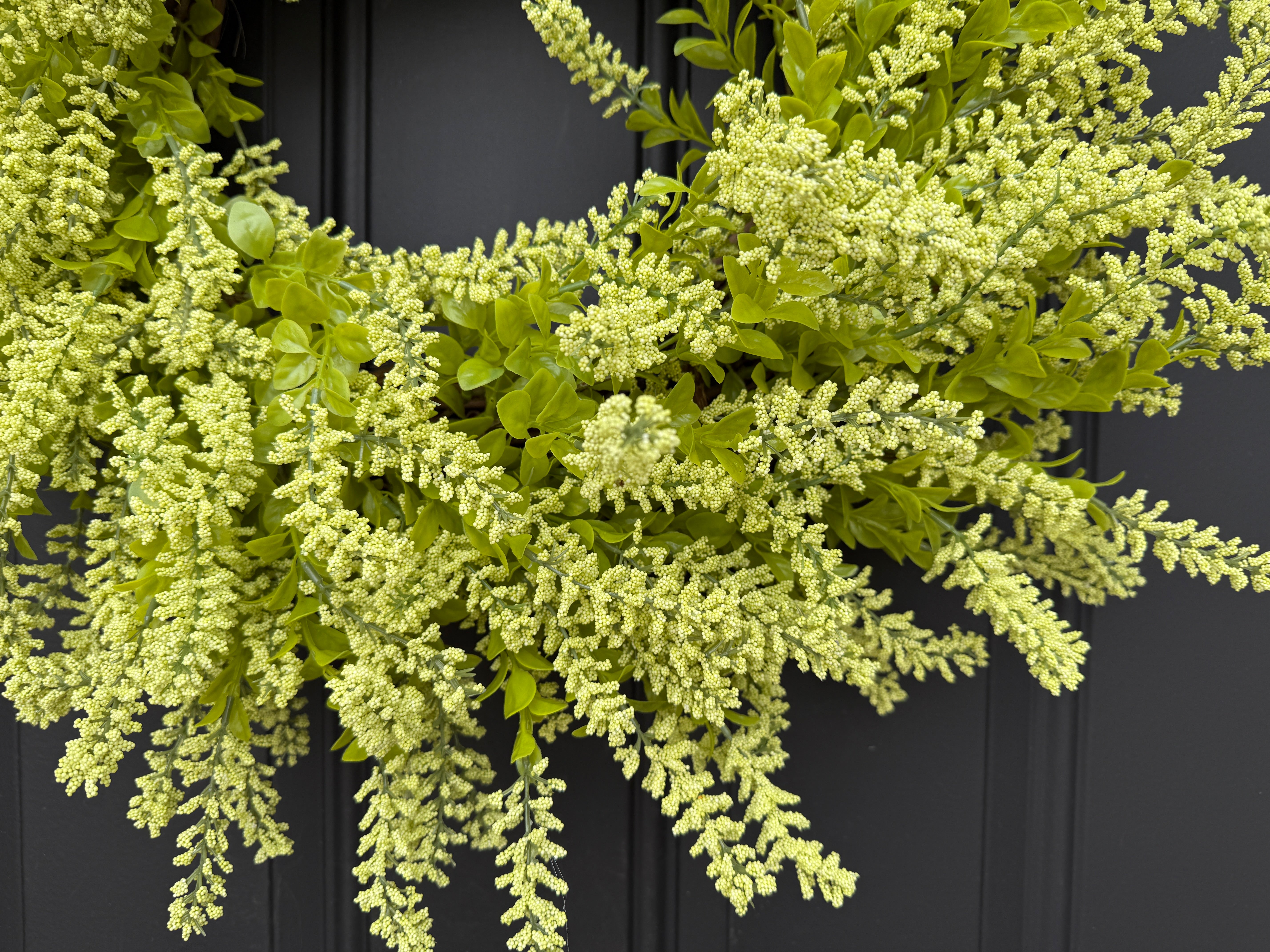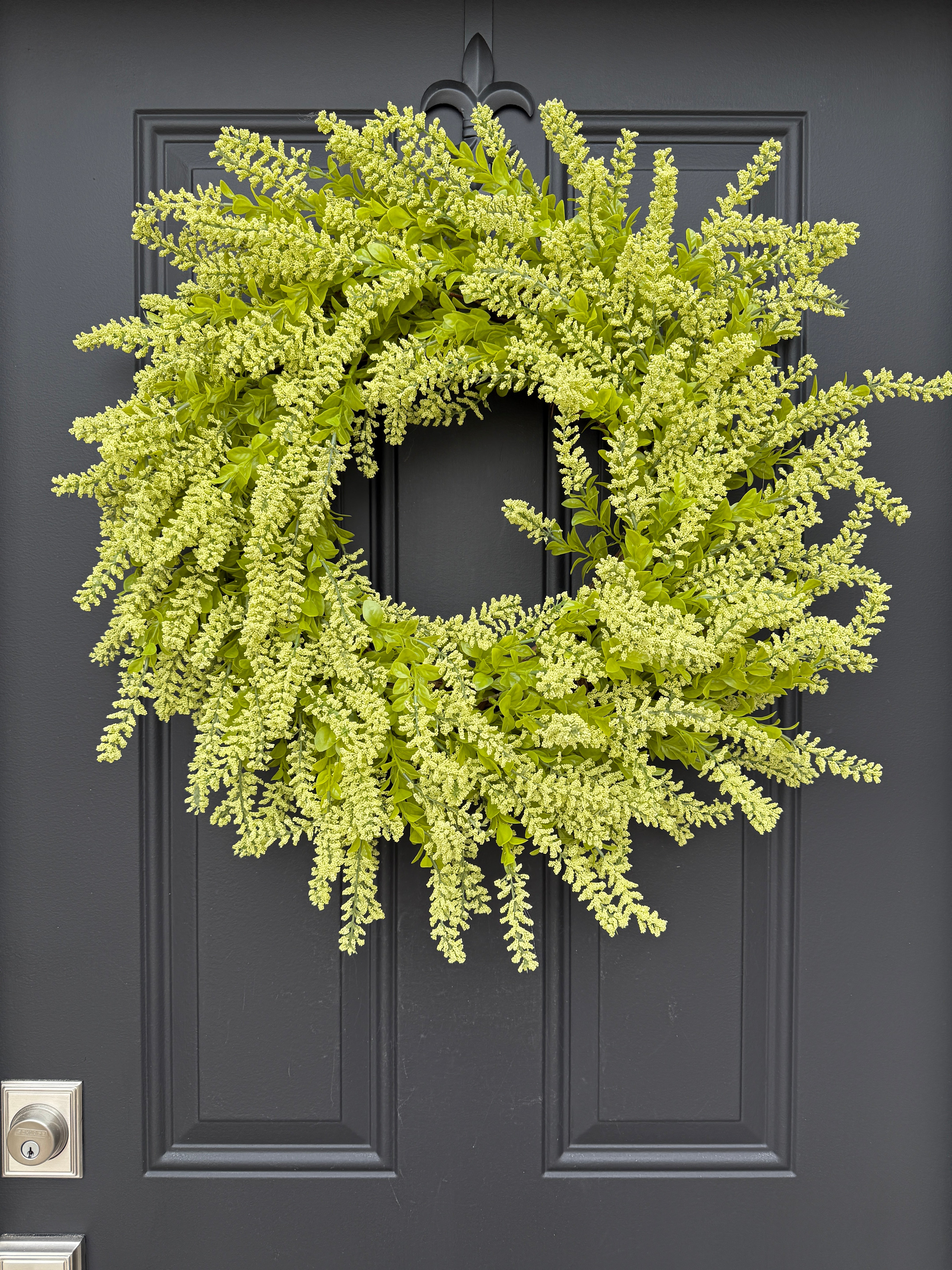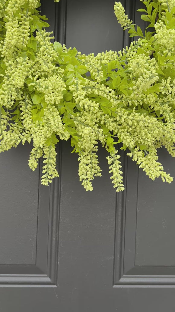 Whether you're refreshing your seasonal door décor or creating a year-round greenery display, this chartreuse lavender seed bush wreath delivers handcrafted quality and natural beauty.