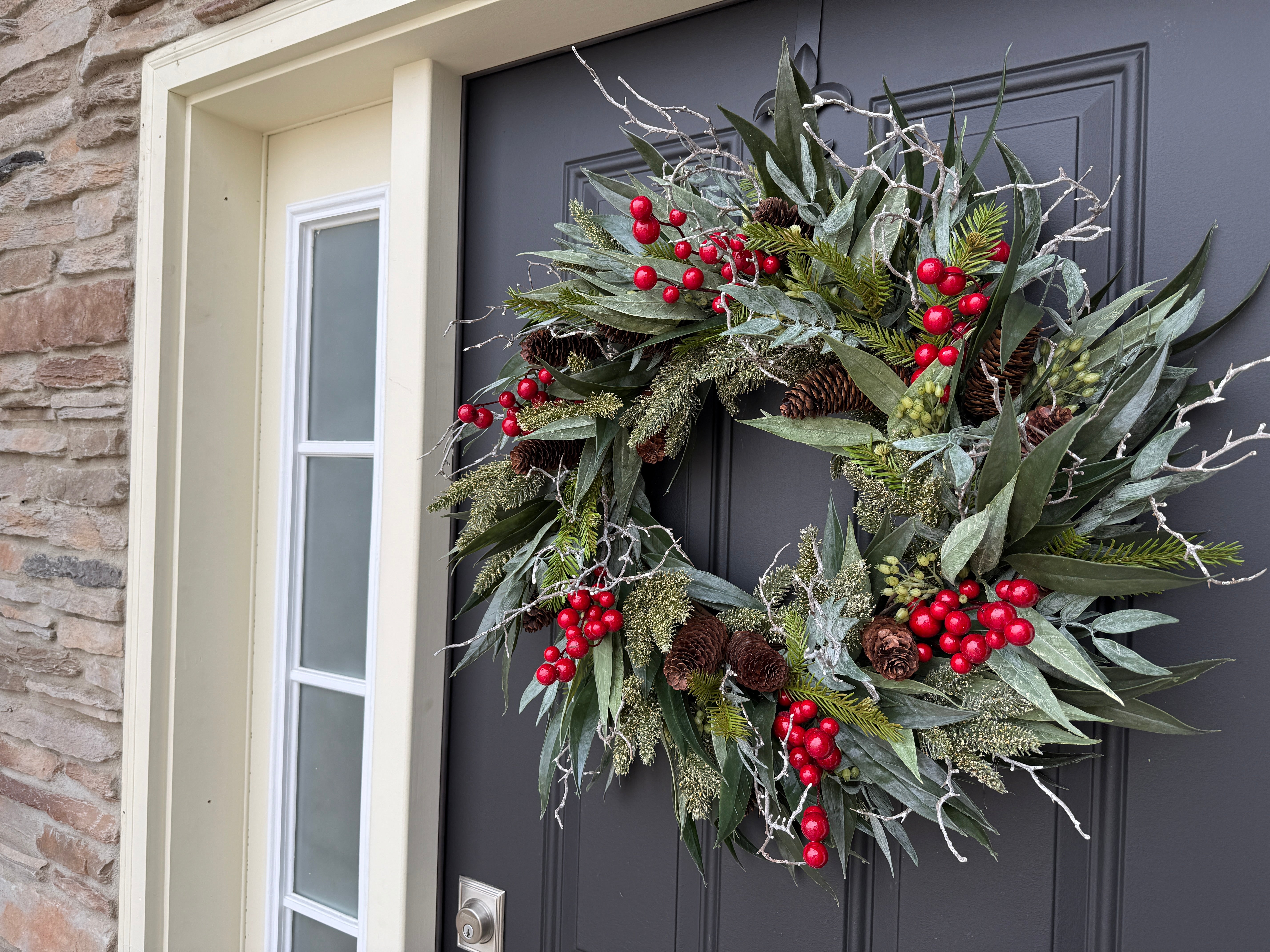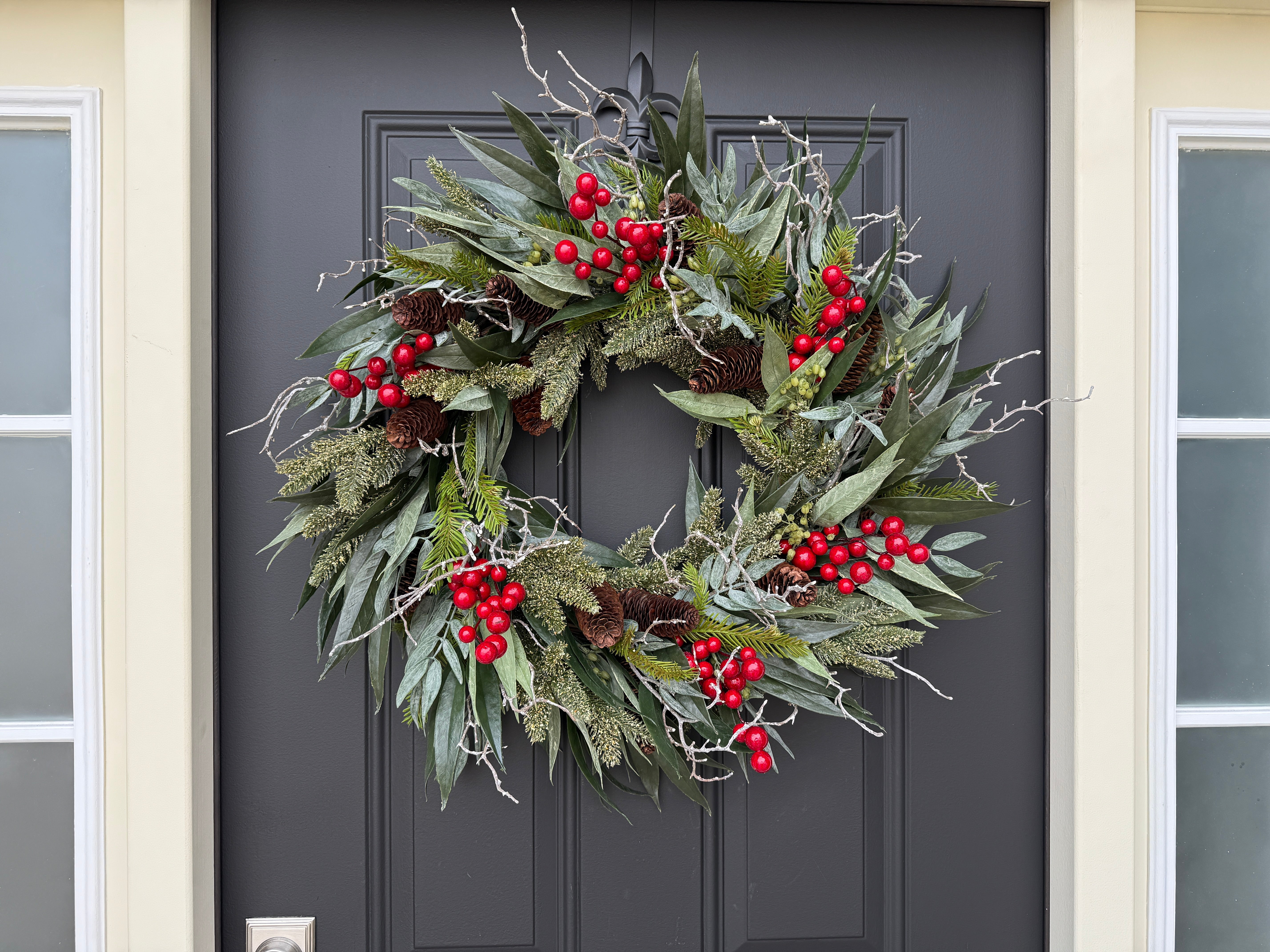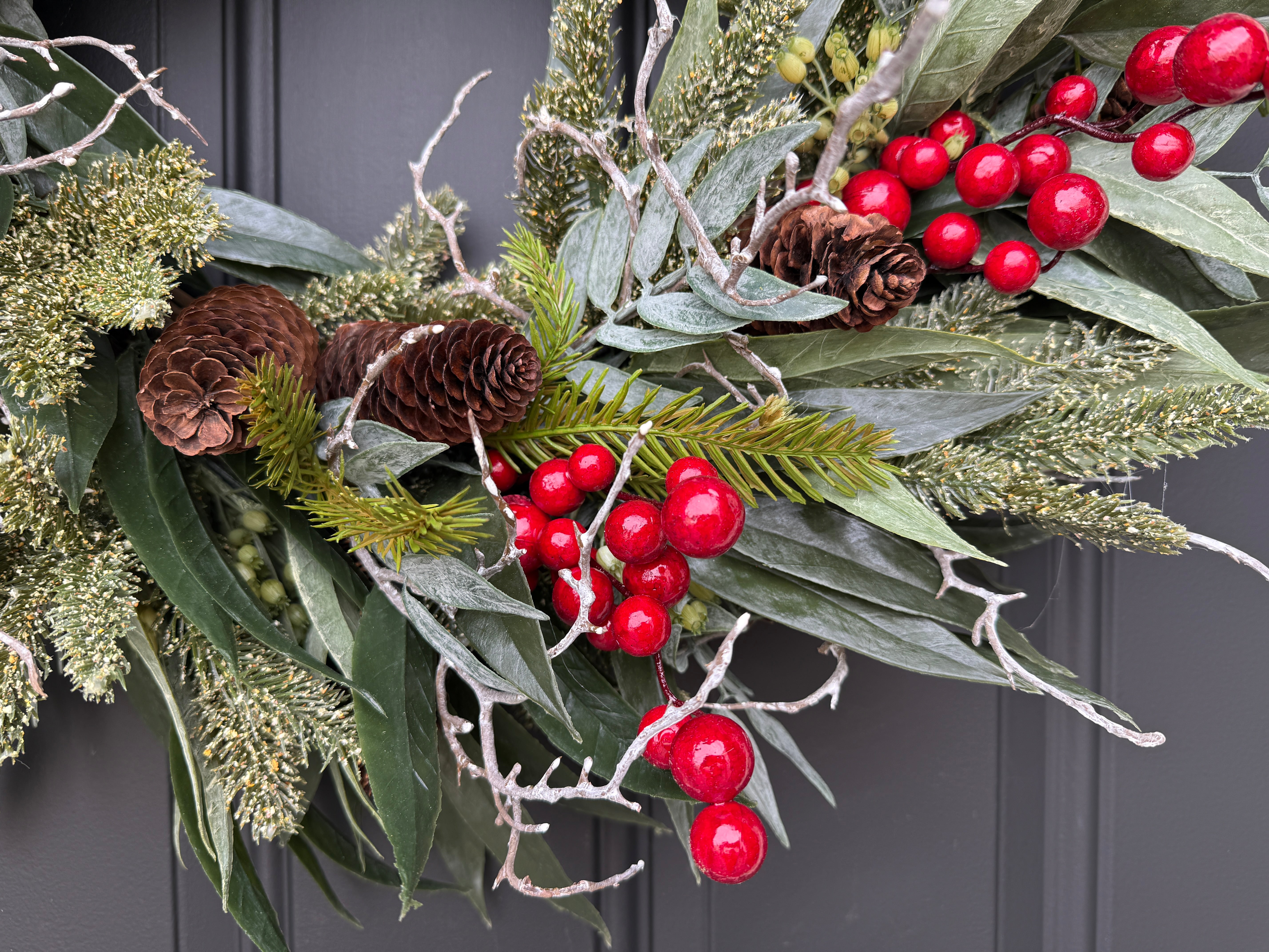 Evergreen, Red Berry & Pinecone Wreath | Handcrafted Christmas Decor