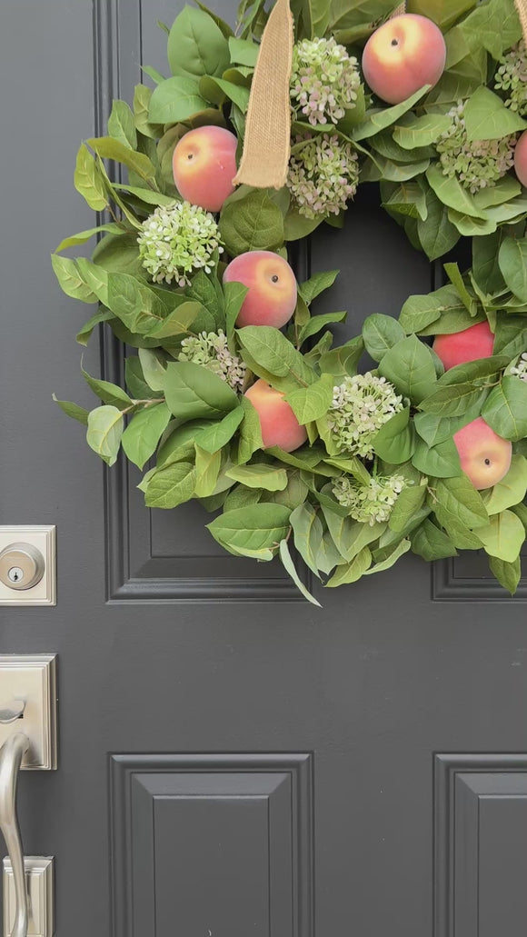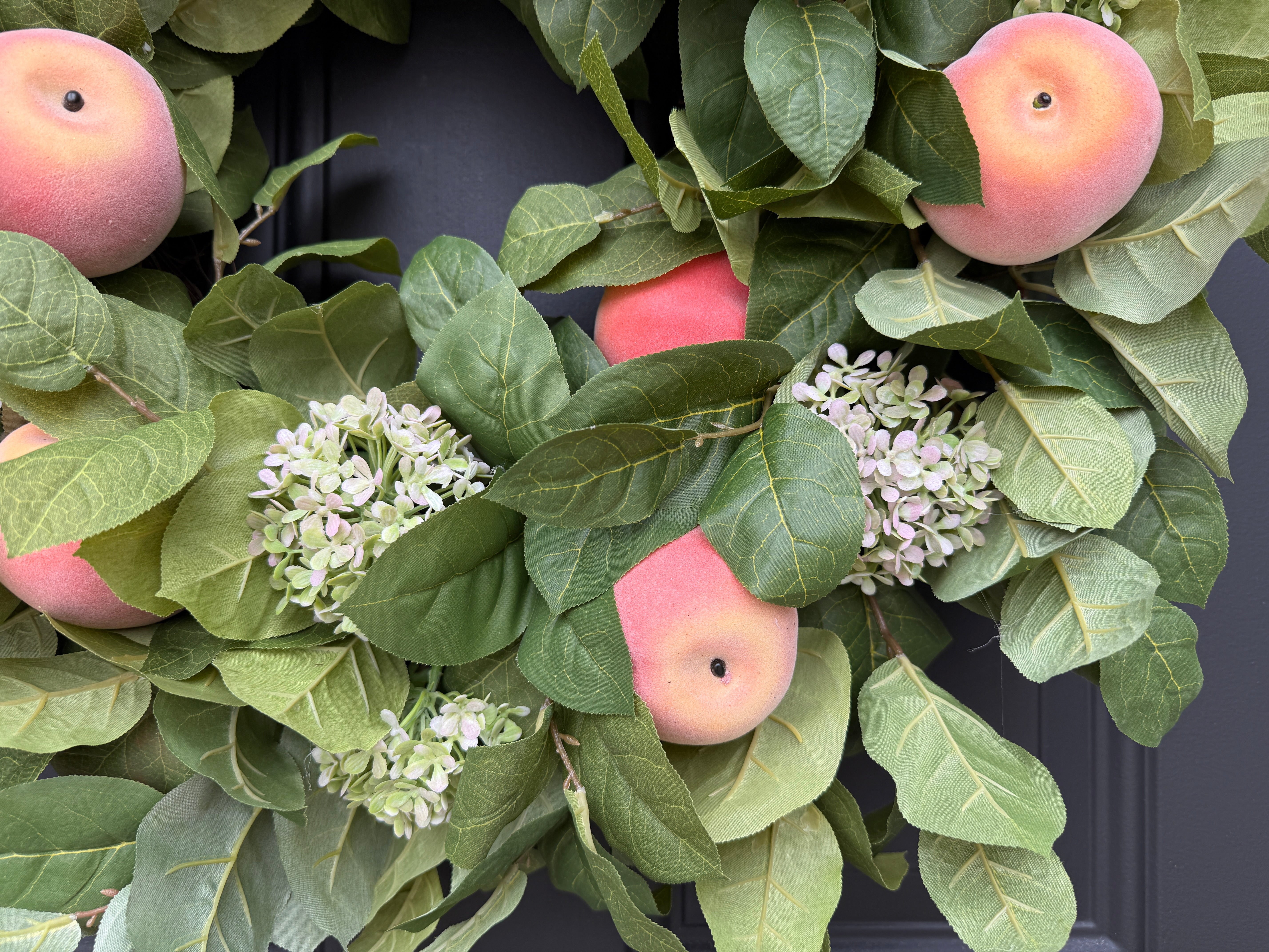 Welcome the season with the lush, sun-kissed charm of our Georgia Peaches Spring Wreath — a handcrafted statement piece that captures the essence of a Southern spring in full bloom. Imagine your front door adorned with plump, blush-toned peaches nestled among layers of soft greenery, evoking the warmth of a Georgia orchard on a perfect spring afternoon.