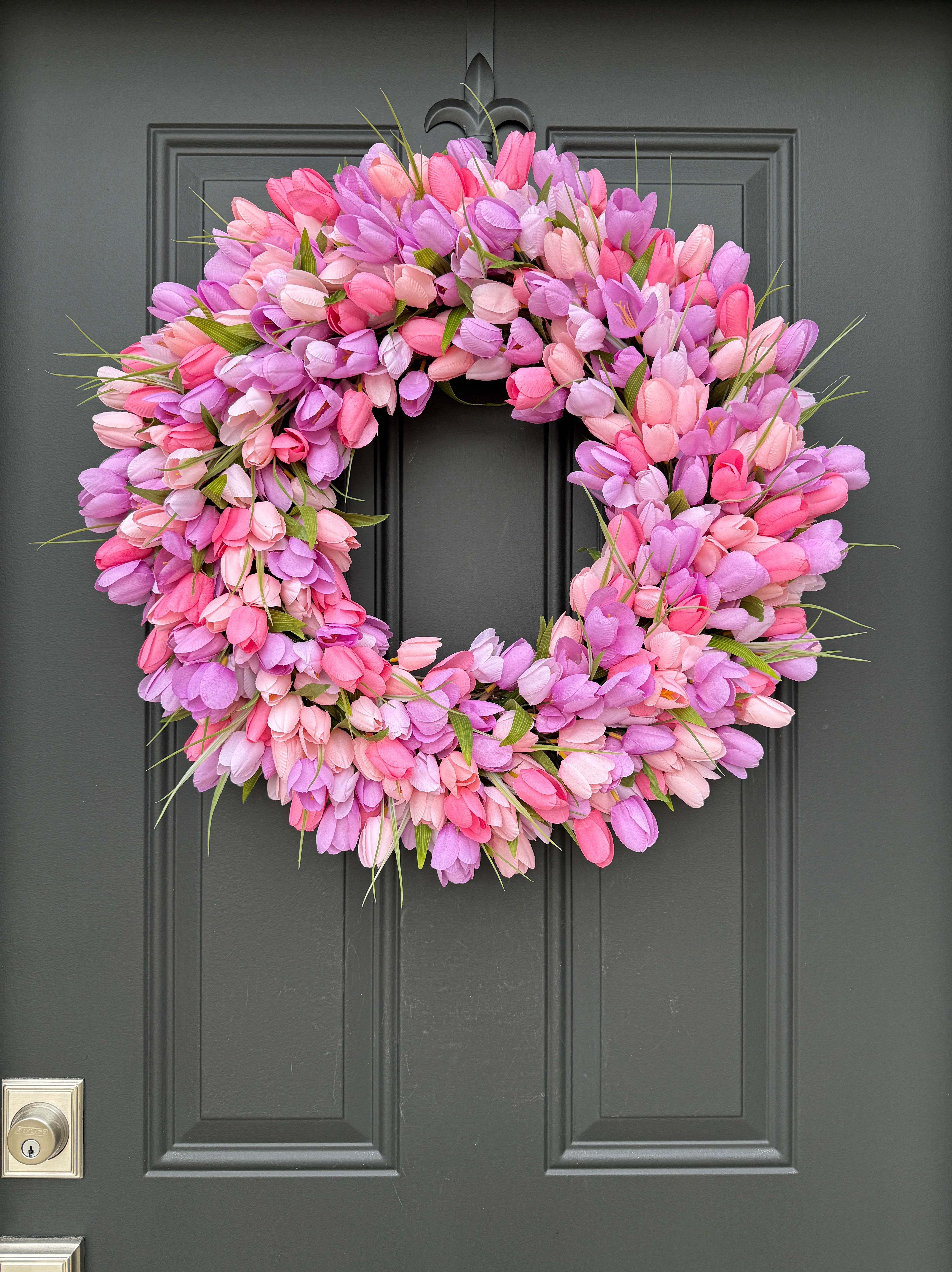 Pink and Purple Tulip Wreath - Spring Tulip Wreath for Front Door
