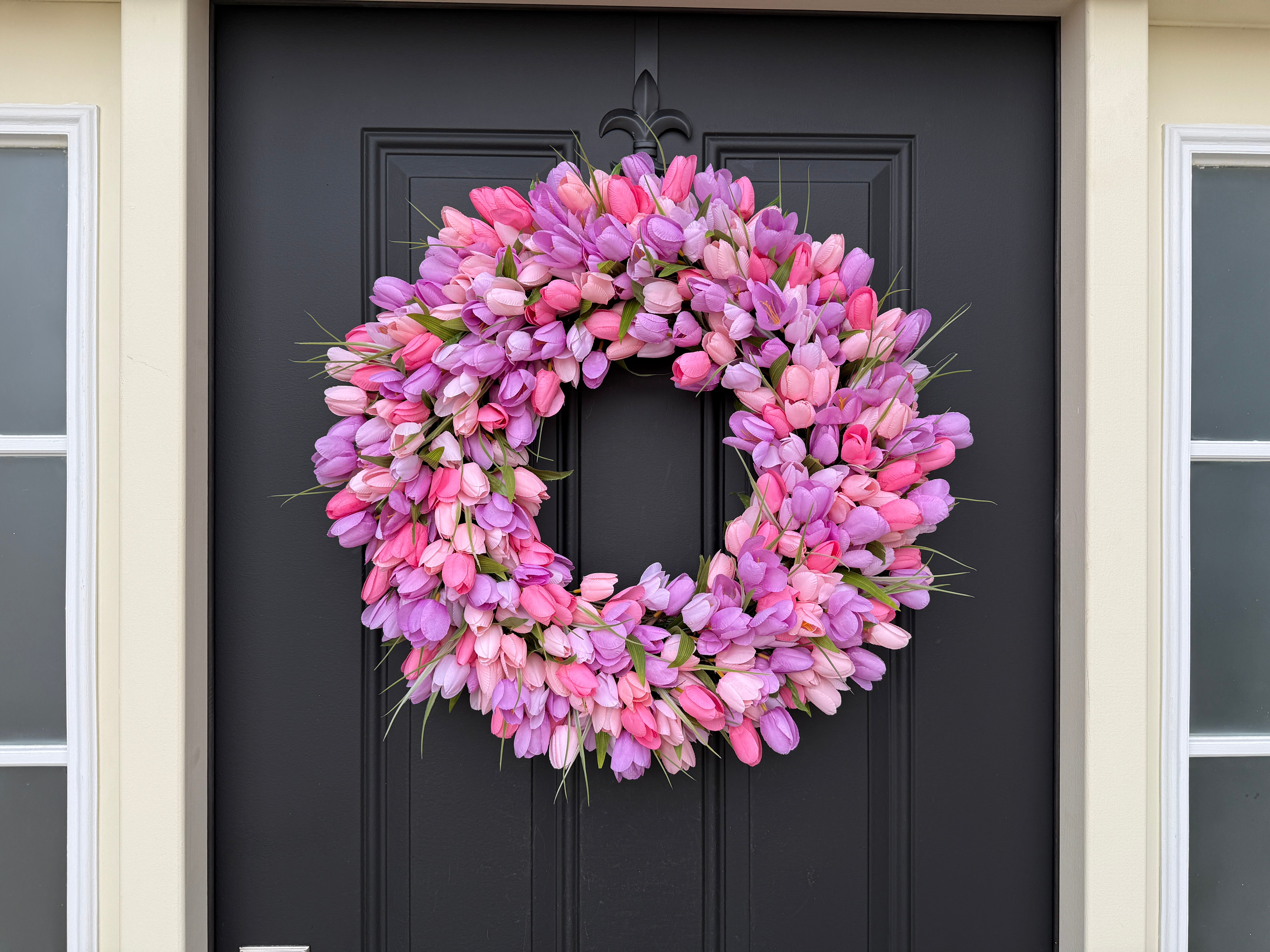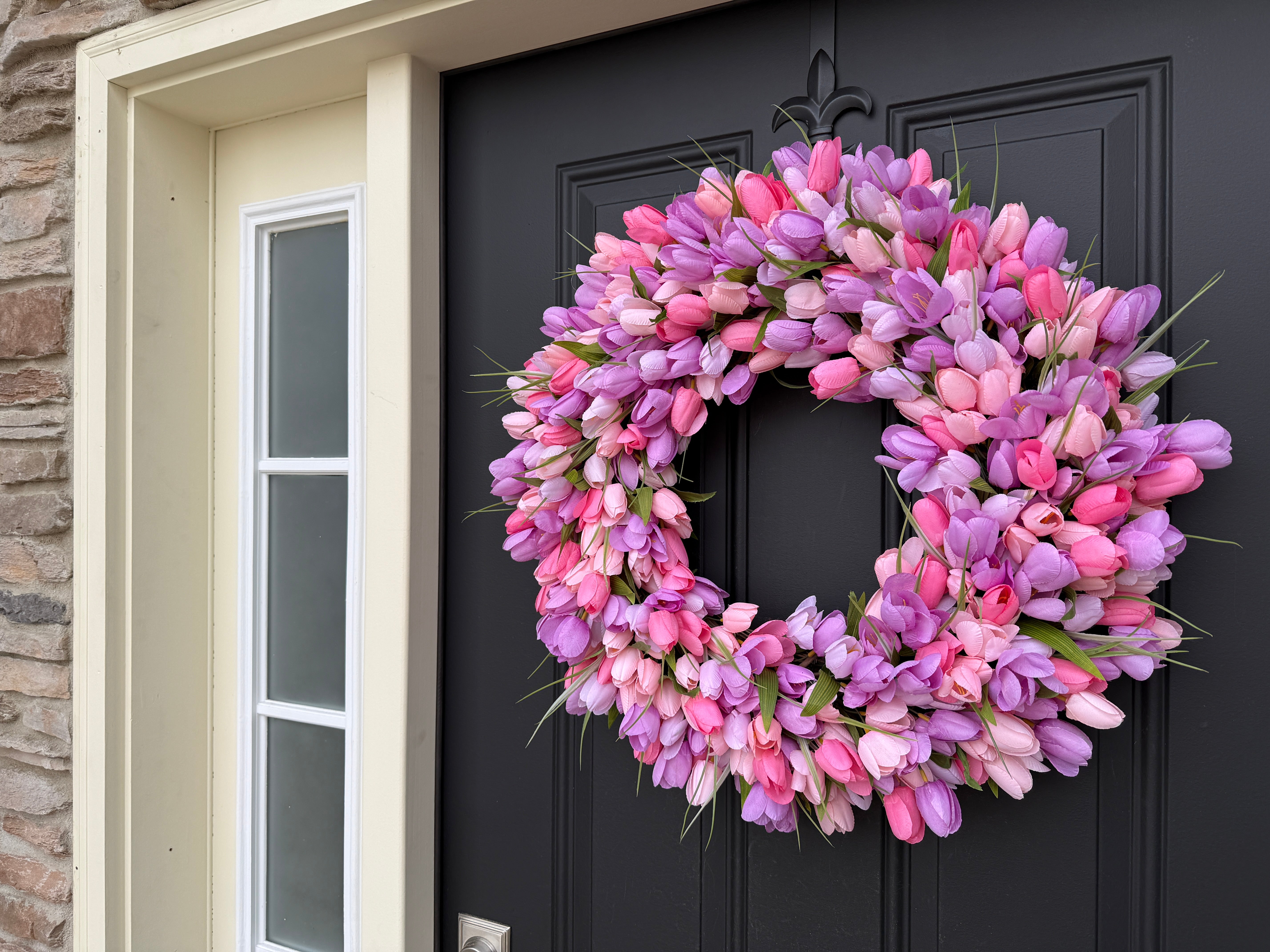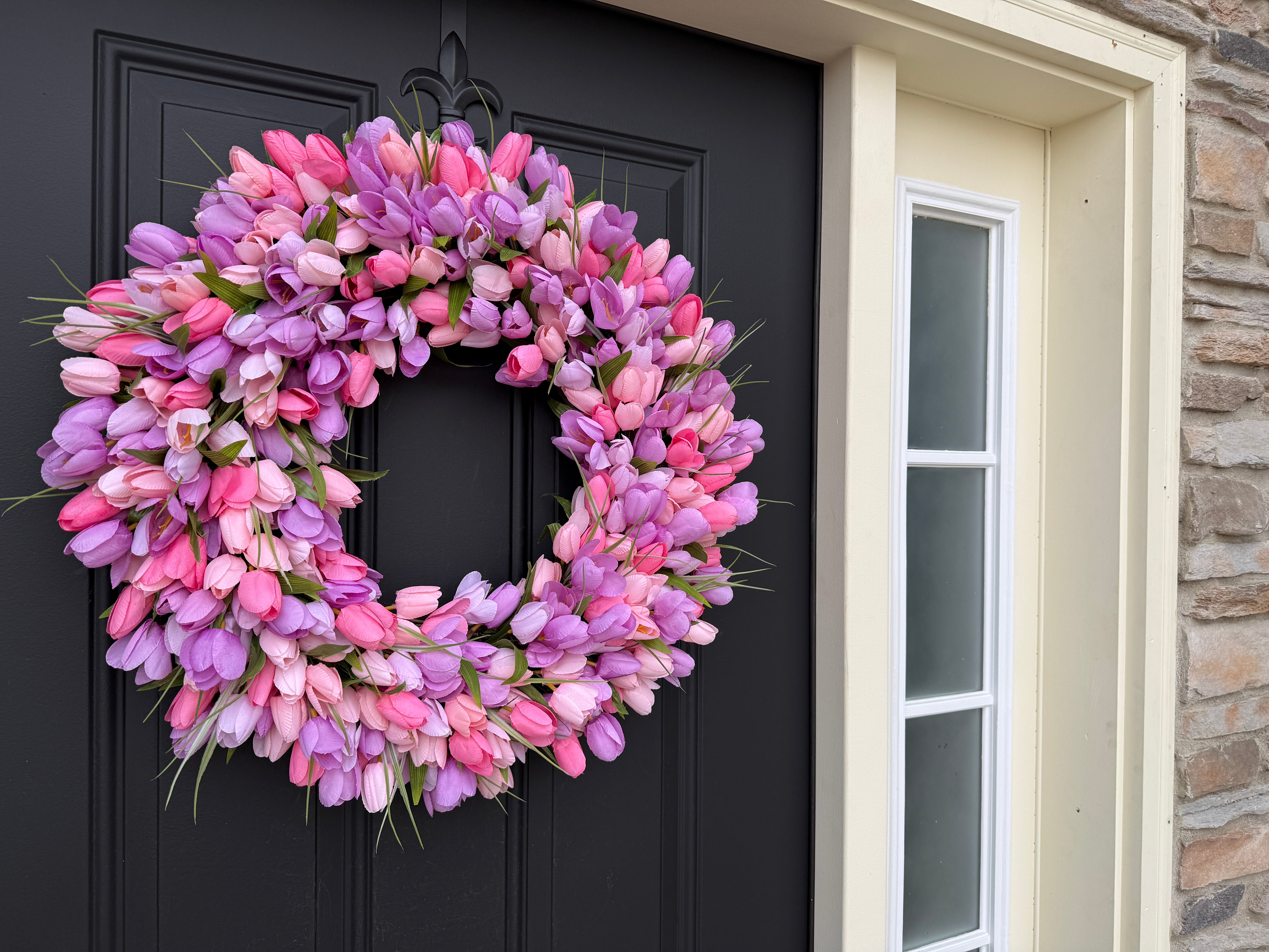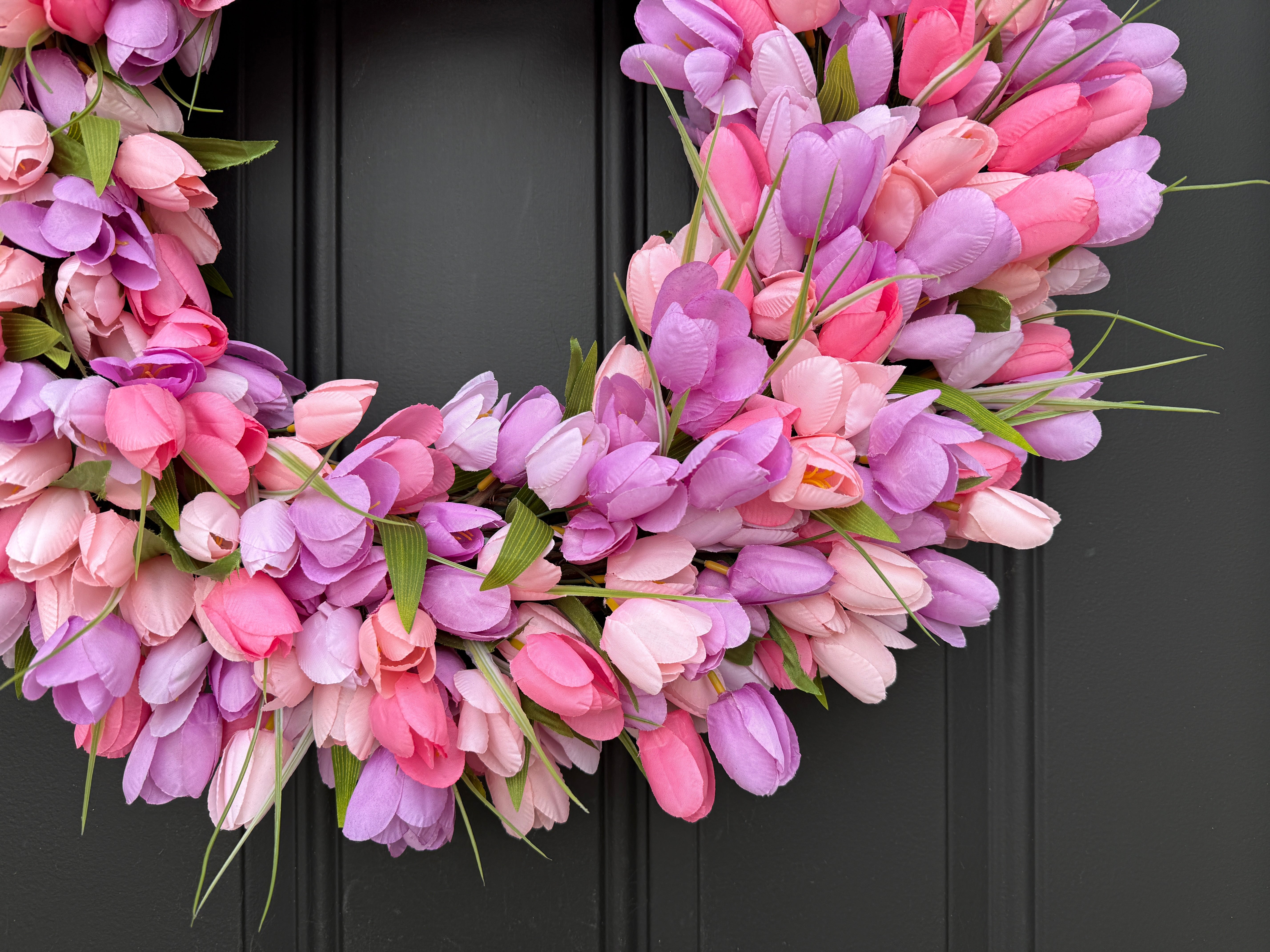 Bring the beauty of a spring tulip garden to your front door with this stunning handcrafted wreath.