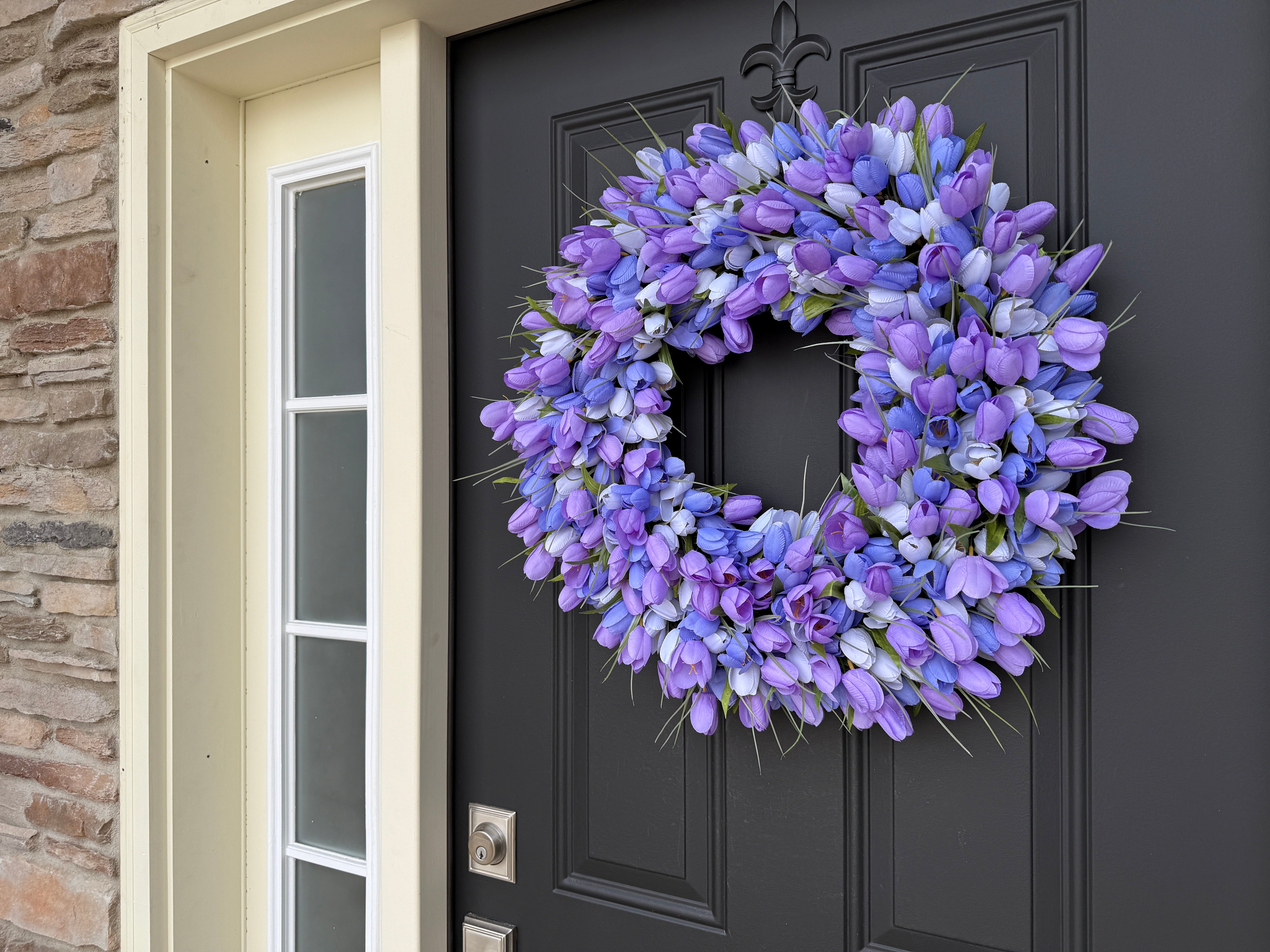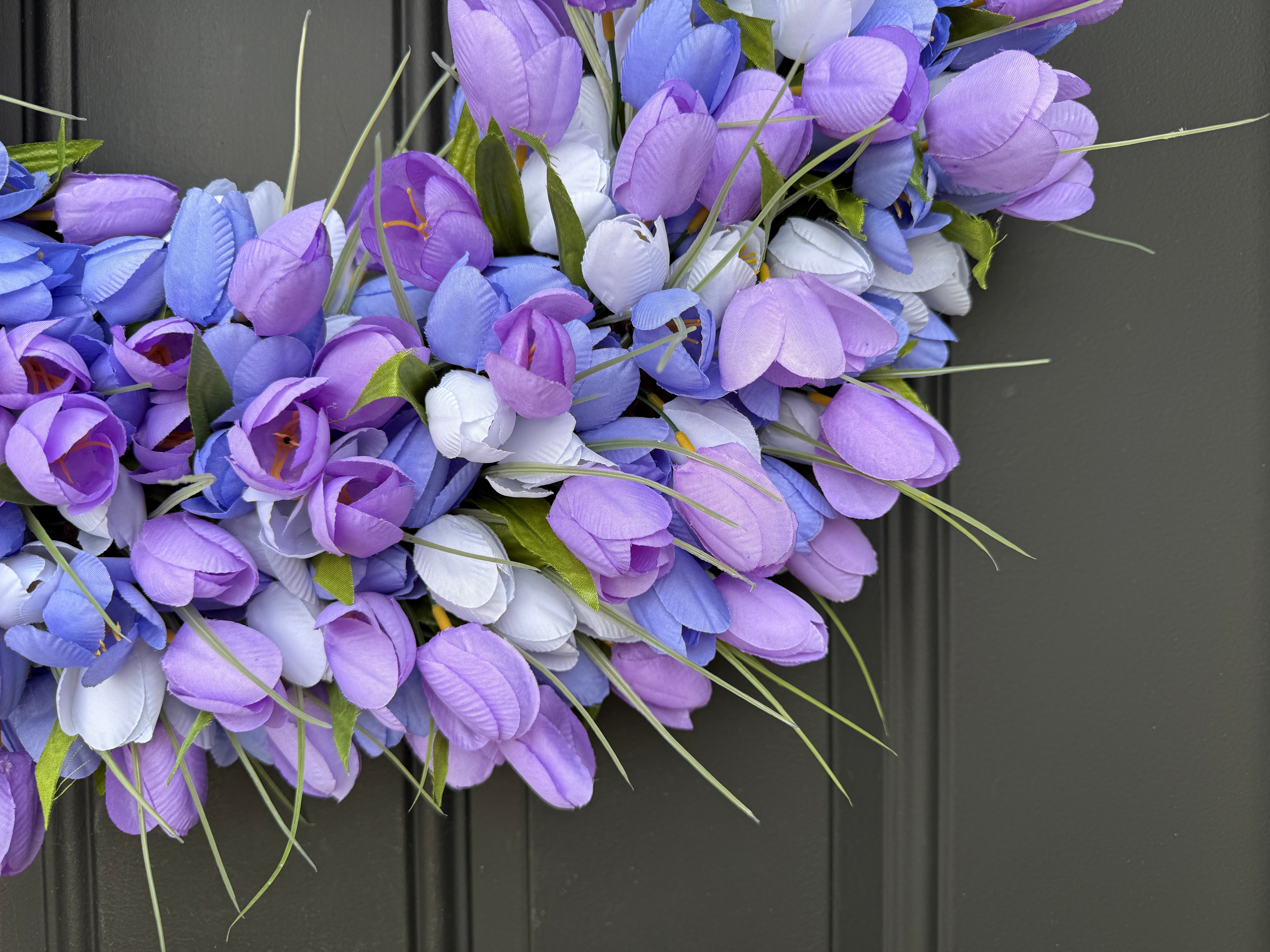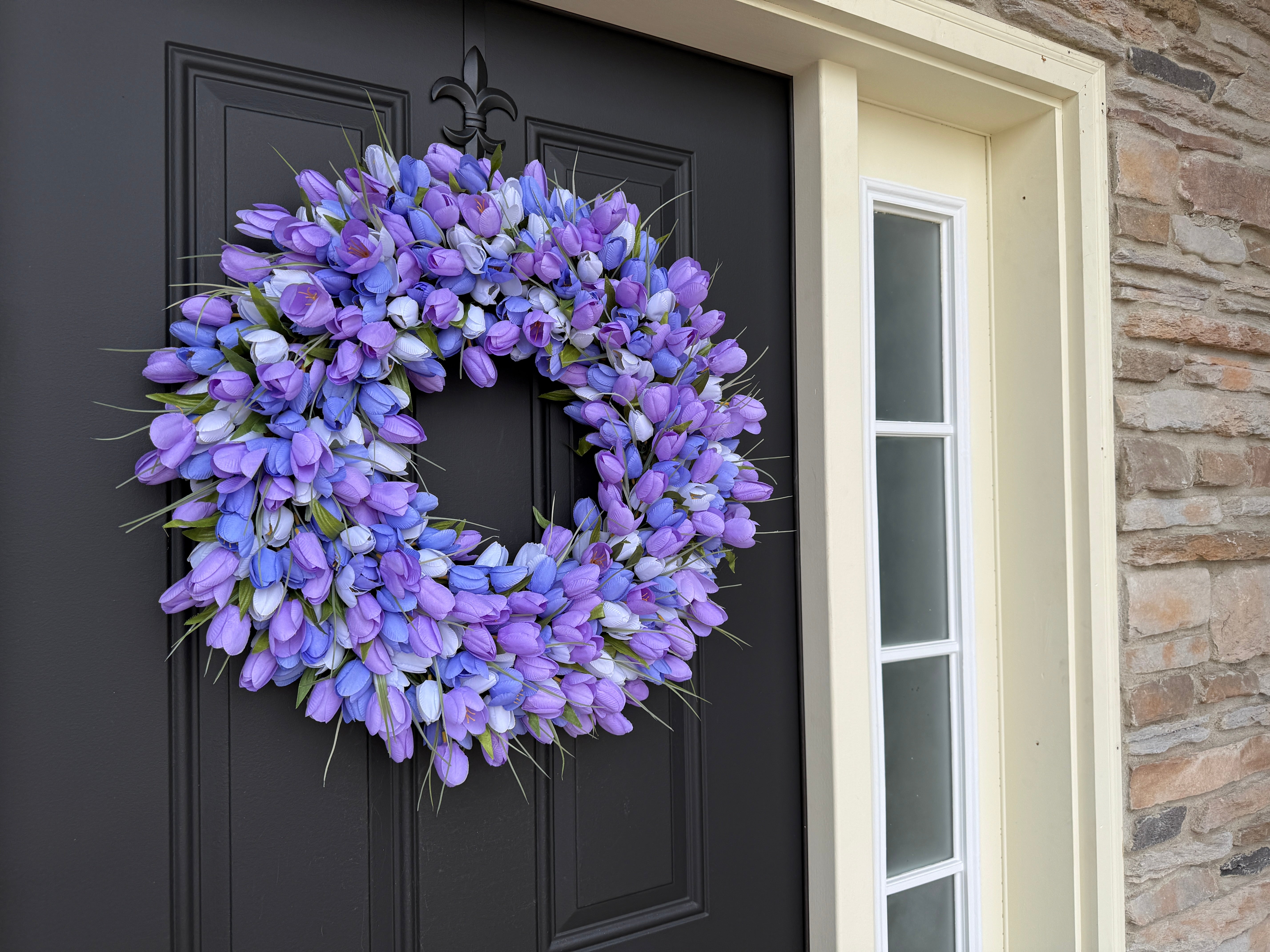 Whether you're refreshing your seasonal door décor or adding a touch of springtime elegance to your home, this purple blend tulip wreath delivers handcrafted quality and timeless beauty.
