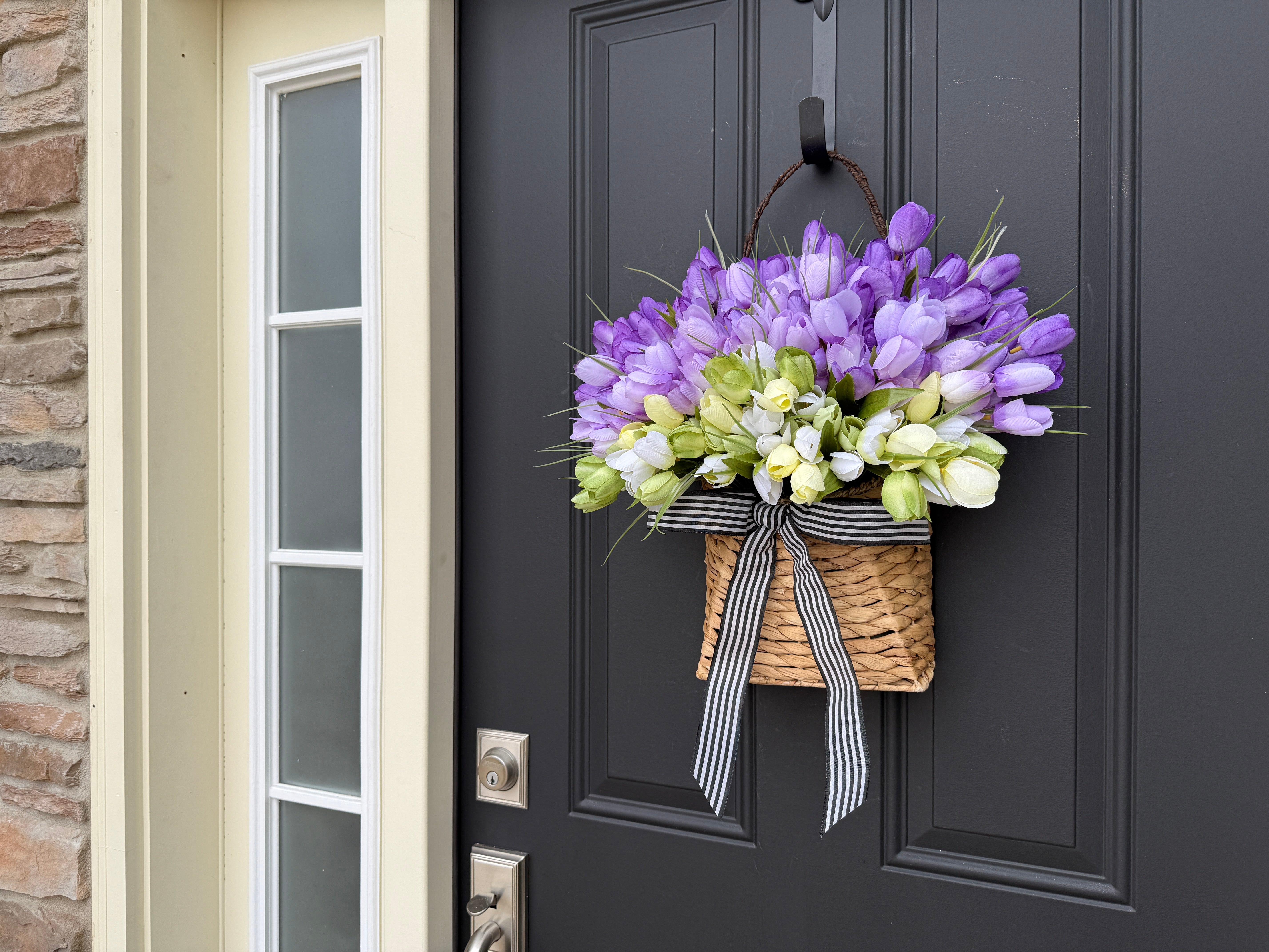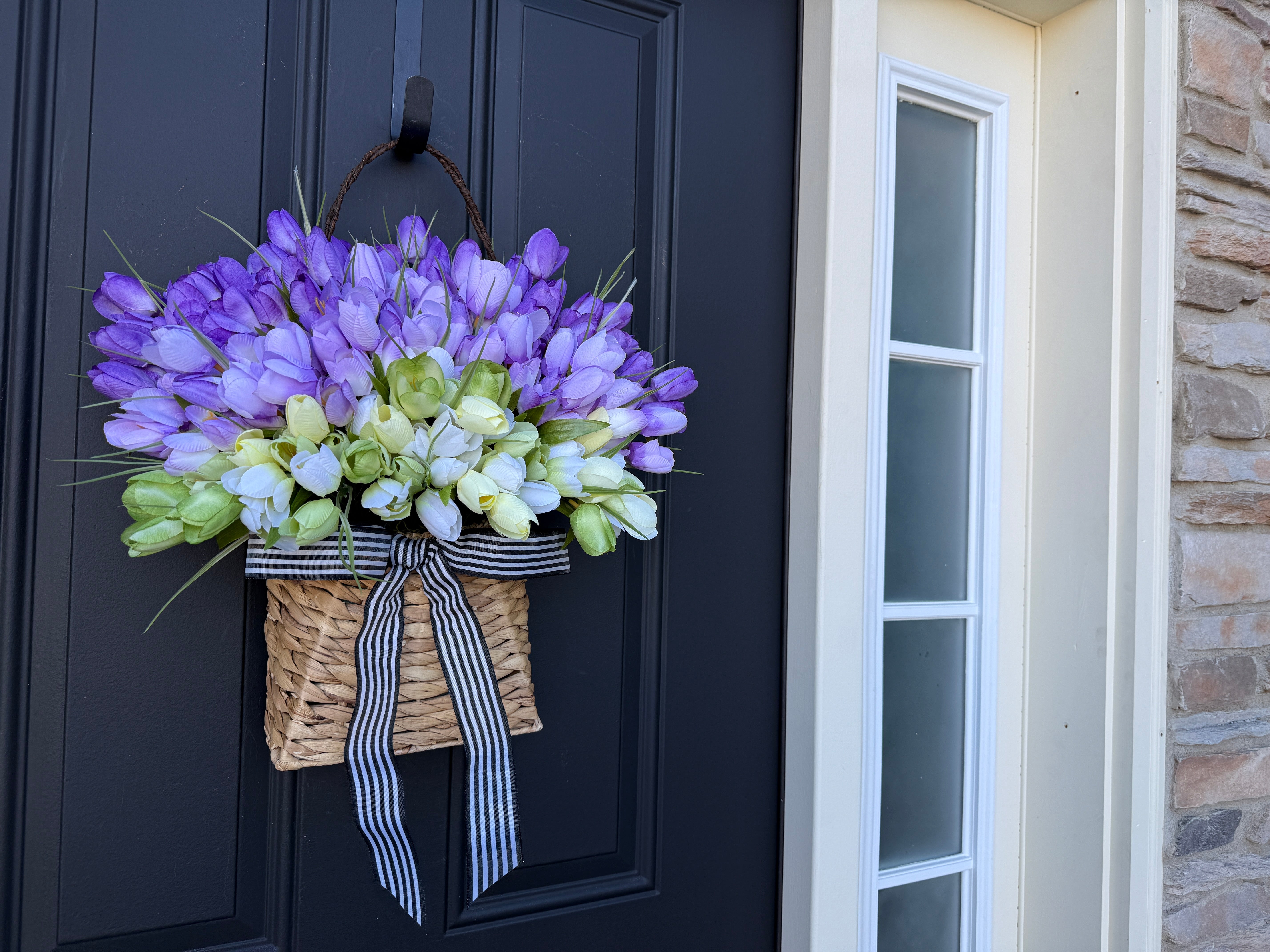 Whether you're celebrating a special occasion or simply treating yourself to something beautiful, our Purple Tulip Basket transforms any space into a welcoming sanctuary.