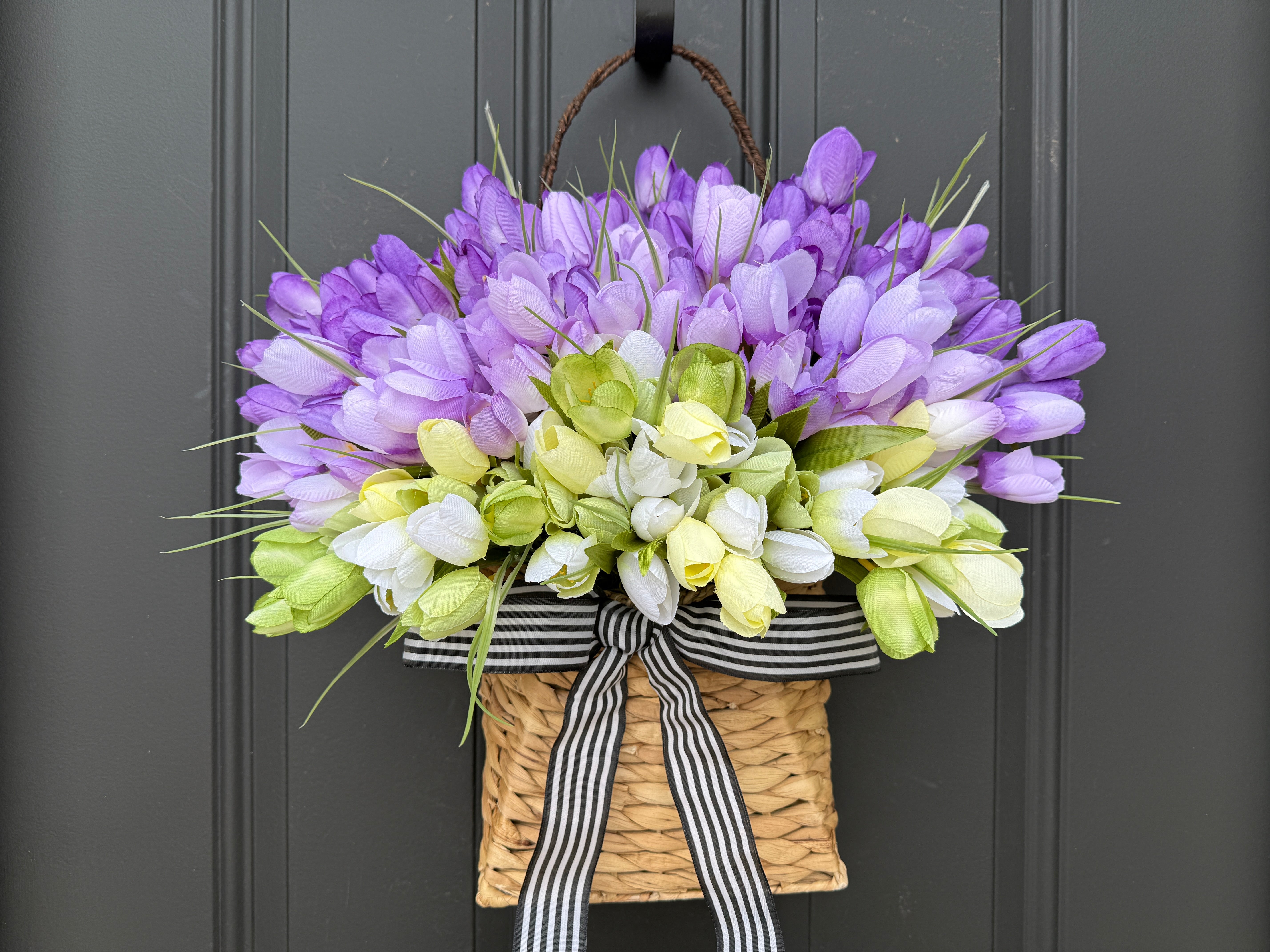 Purple Tulip Basket - Handcrafted Spring Floral Arrangement