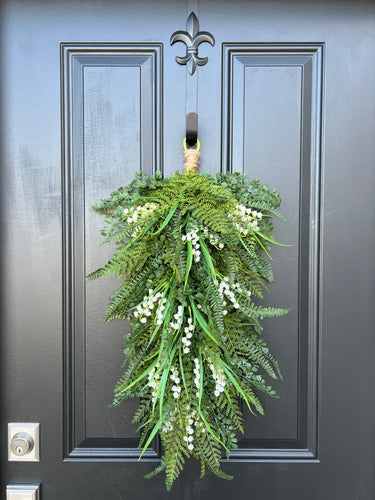 Spring Lily of the Valley and Fern Teardrop Wreath